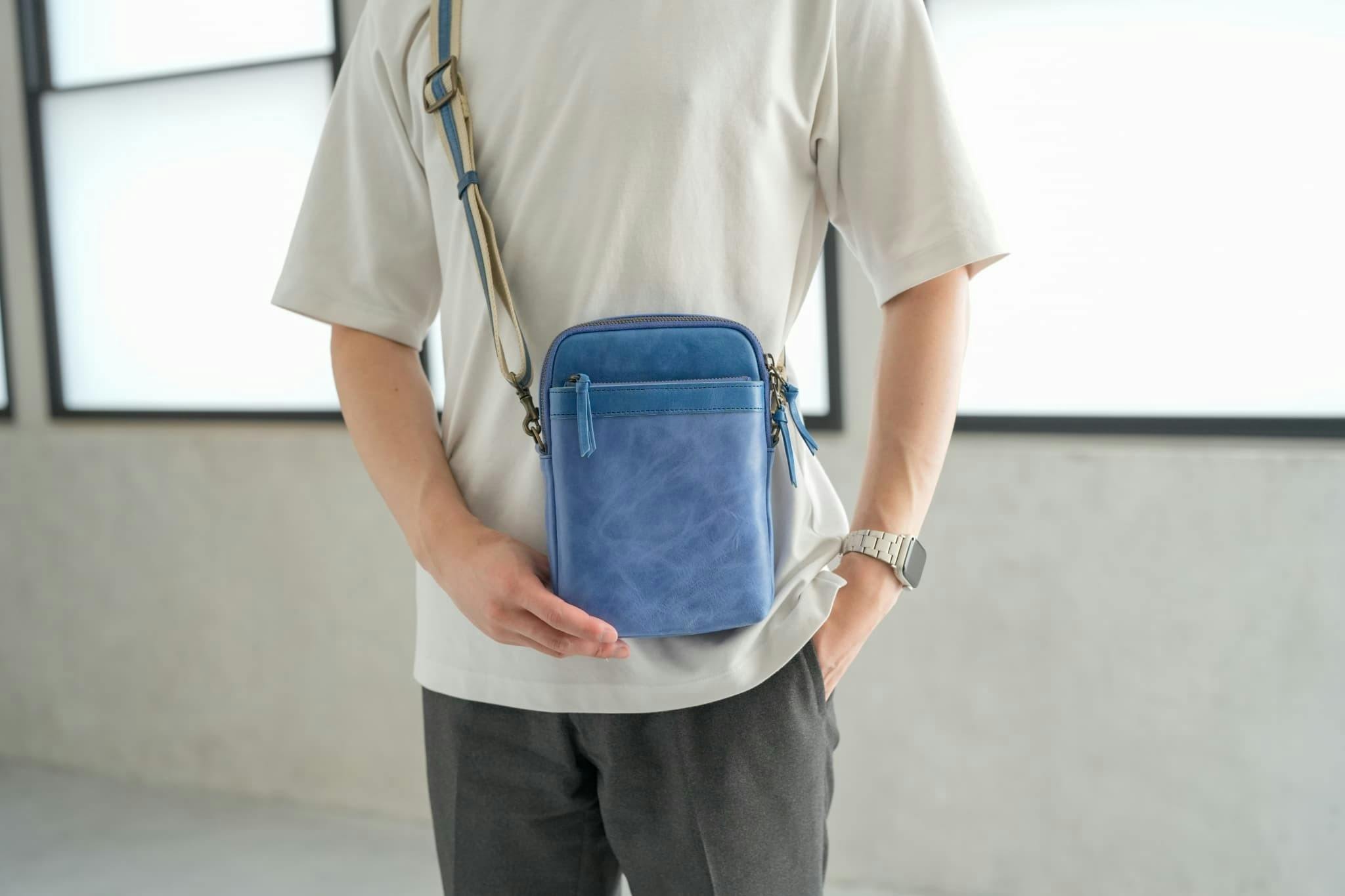 一般的なポシェットといえば合皮やナイロン製がほとんどで百貨店やセレクトショップでもなかなか牛革製のものを見ることが少なくなりました。今回のポシェットは素材にももちろんこだわりましたが、見た目上品でカッコいいを兼ね備えました。