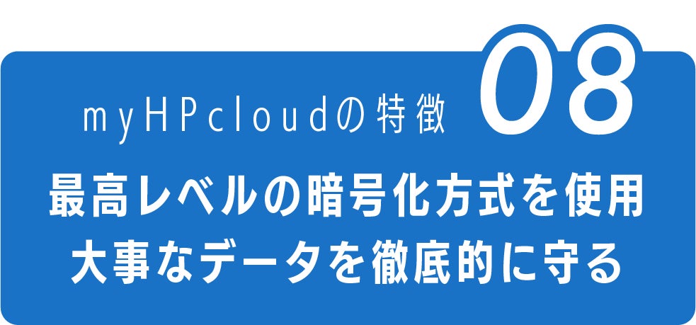 myHPcloudは、この解読困難な256ビットAES暗号化を採用し、非常に高いセキュリティ性能であなたのデータを強力に保護します。