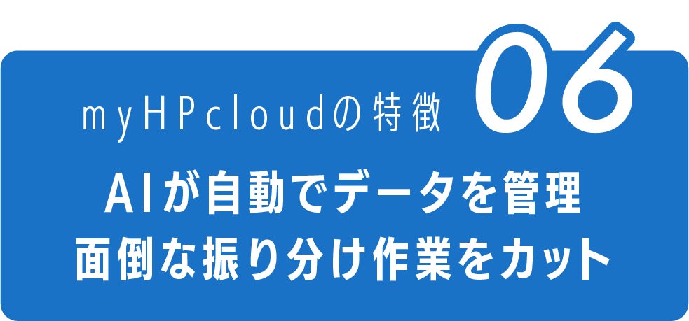 myHPcloudは、AIと機械学習アルゴリズムによって、保存されているファイルを自動で分析し、あなたが探しているデータを瞬時に予測します。