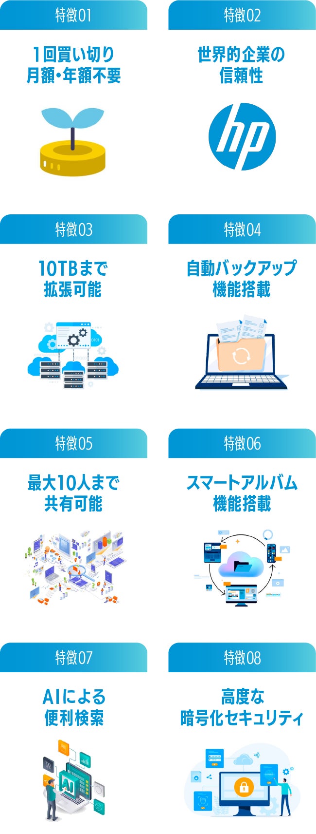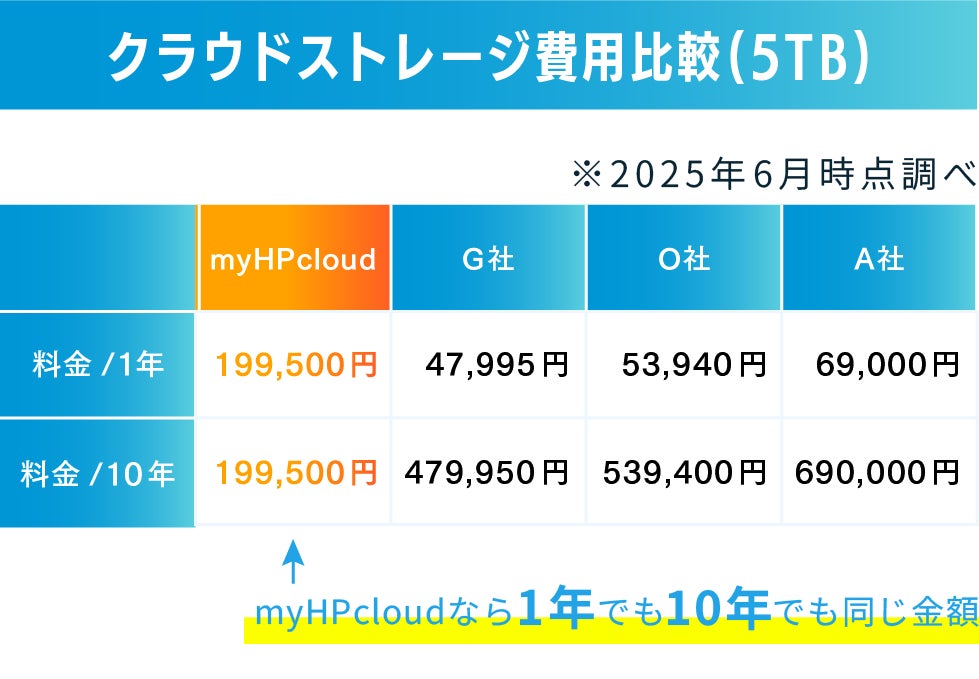 myHPcloudの最大の特徴は、生涯にわたるクラウドストレージの費用を圧倒的に抑えられる点です。