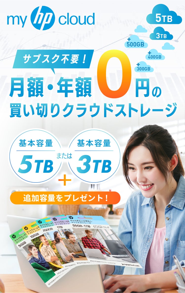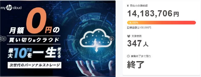 『myHPcloud』は、前回のプロジェクトでは多くのご支援をいただき、総額1,400万円以上を達成しました。ご好評の声にお応えし、今回は容量を大幅にアップグレードした大容量の【5TB】と【3TB】プランをご用意いたしました!