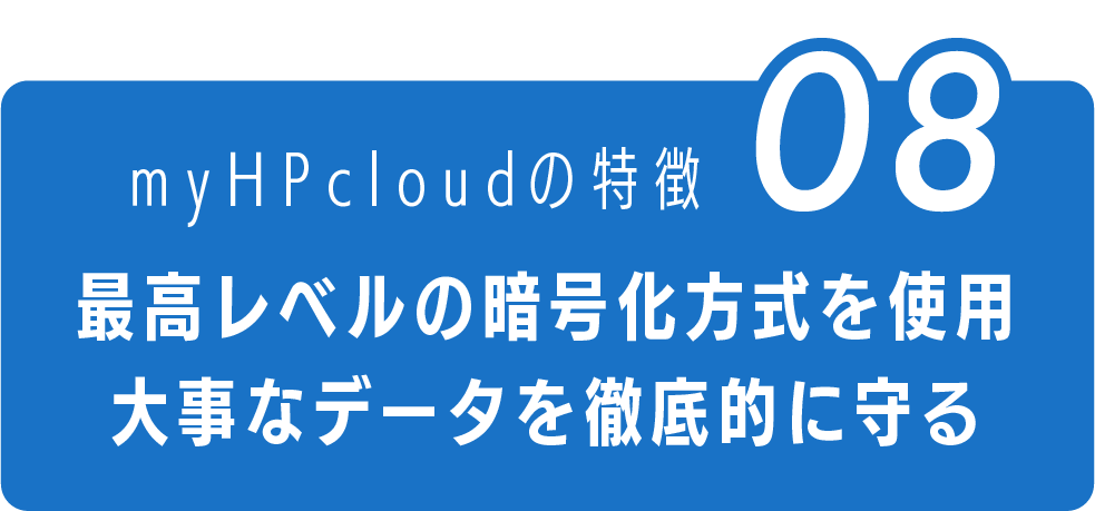 myHPcloudは、この解読困難な256ビットAES暗号化を採用し、非常に高いセキュリティ性能であなたのデータを強力に保護します。