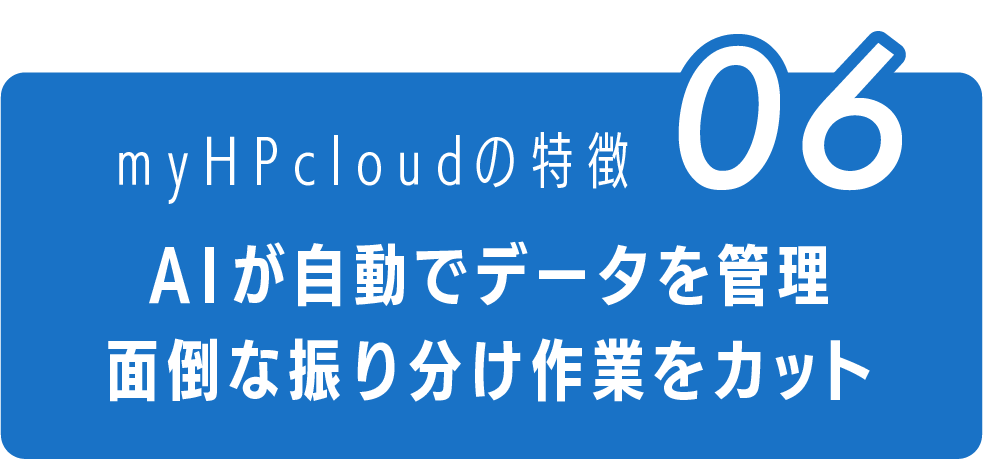 myHPcloudは、AIと機械学習アルゴリズムによって、保存されているファイルを自動で分析し、あなたが探しているデータを瞬時に予測します。