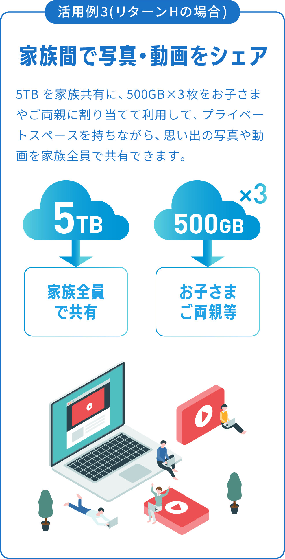様々なタイプのユーザーの平均データ使用量を基に設計された3TB・5TB買い切りクラウドストレージ。