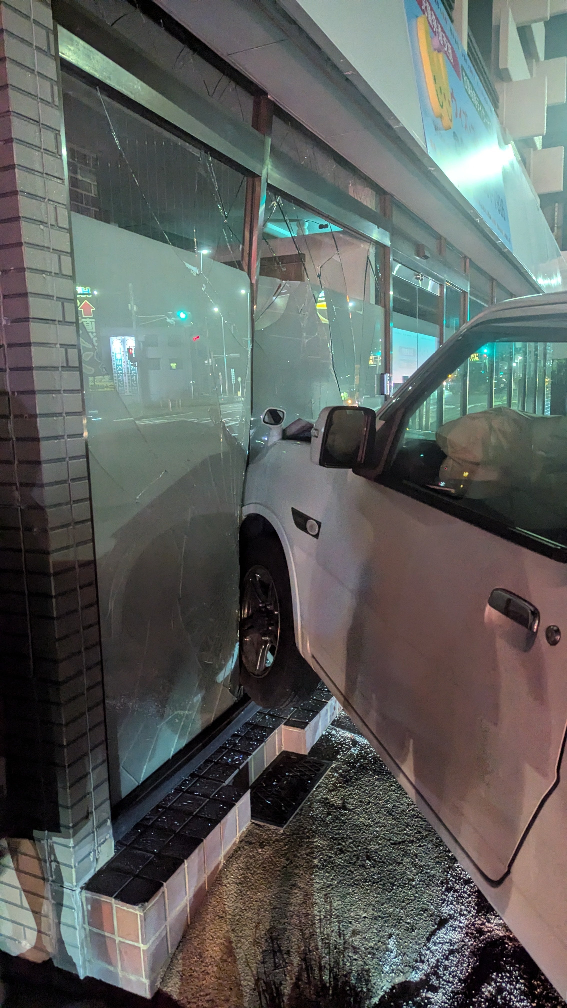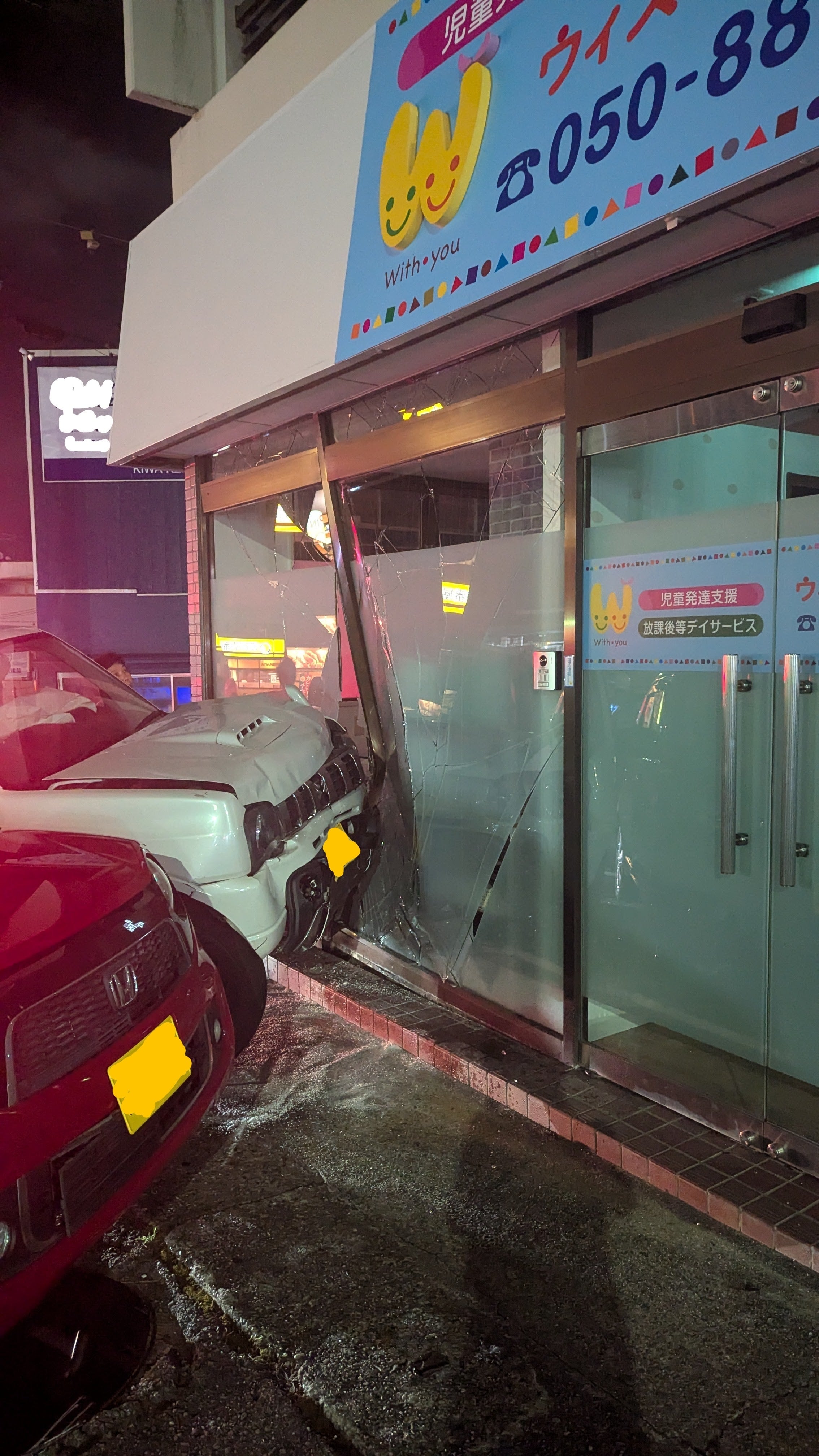 なんと、施設に車が突っ込む事故が起こったのです。