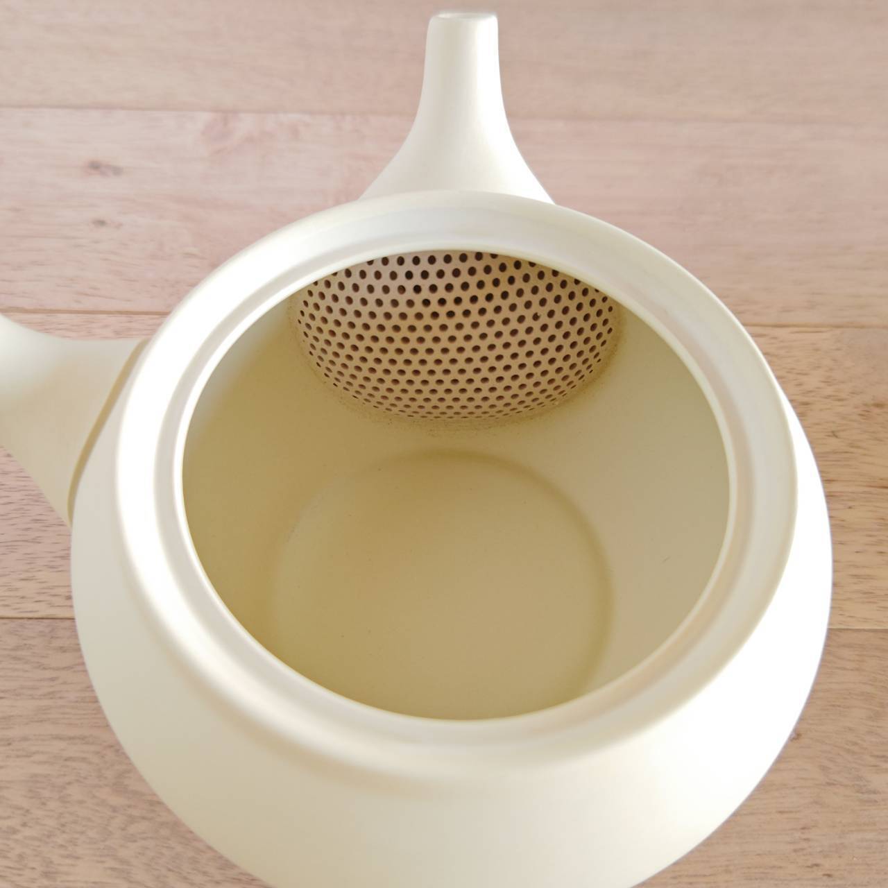 ・職人が手作りした日本茶がおいしく淹れられる常滑急須。色は人気のアイボリーで茶こしのいらないこだわりの急須です。