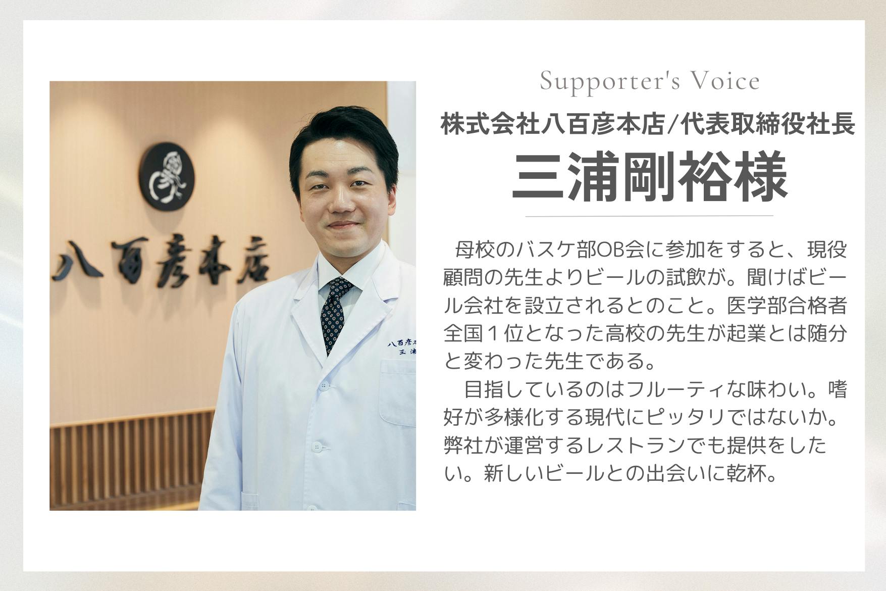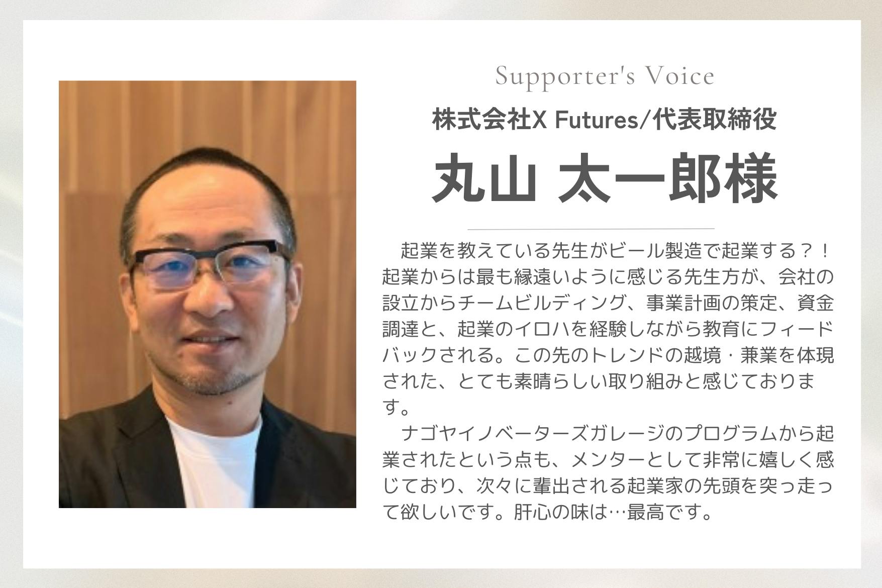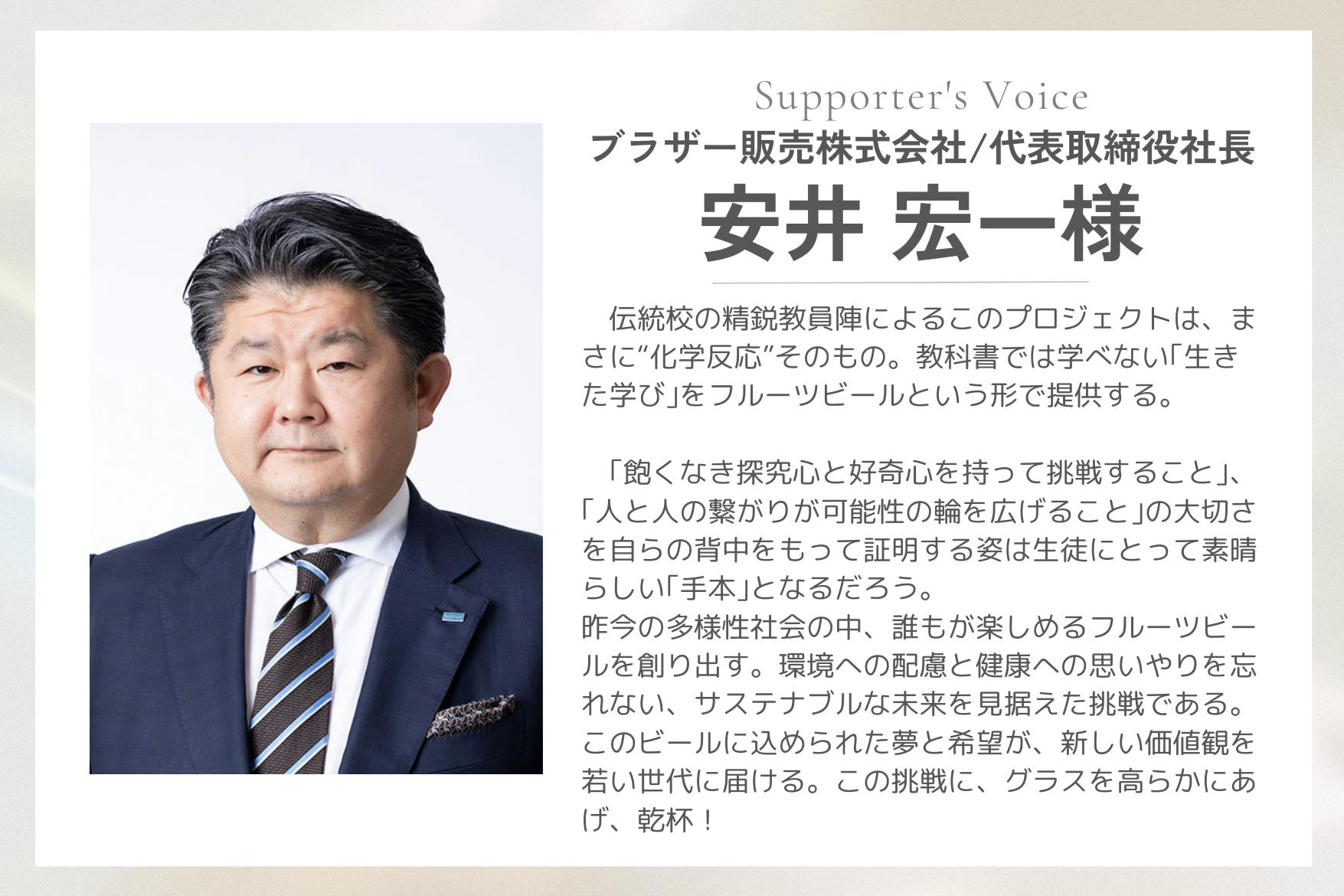 どうか、この新しい挑戦にご賛同いただき、共に新しいビール文化を育み、教育の世界に新しい風を吹き込みましょう。ご協力を心よりお待ちしております。