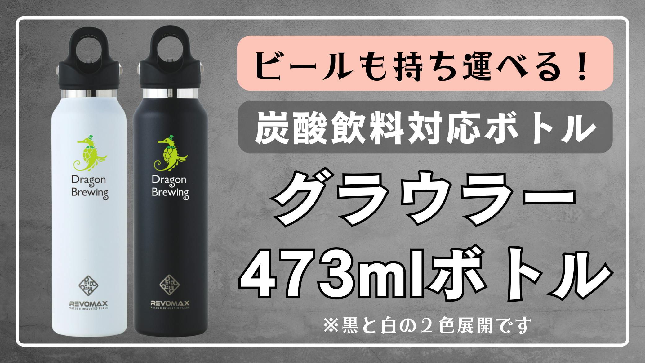 グラウラーとして人気のRevomaxの黒と白のボトルに、可愛いホッピーくんのロゴがついた特注モデルです。