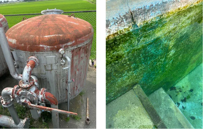 写真左は濾過装置・・・ろ材の入替えが必要です