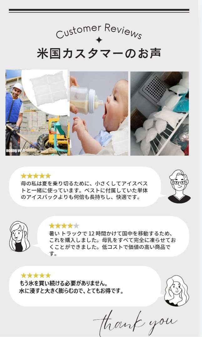 お客様の満足のお声がより当社の活力となり、さらなる革新的な製品をお客様に提供できるよう、日々取り組んでいます。暑い夏のキャンプなどのアウトドアで大活躍し、環境にも優しい「NICE PACKS」をぜひお楽しみください。