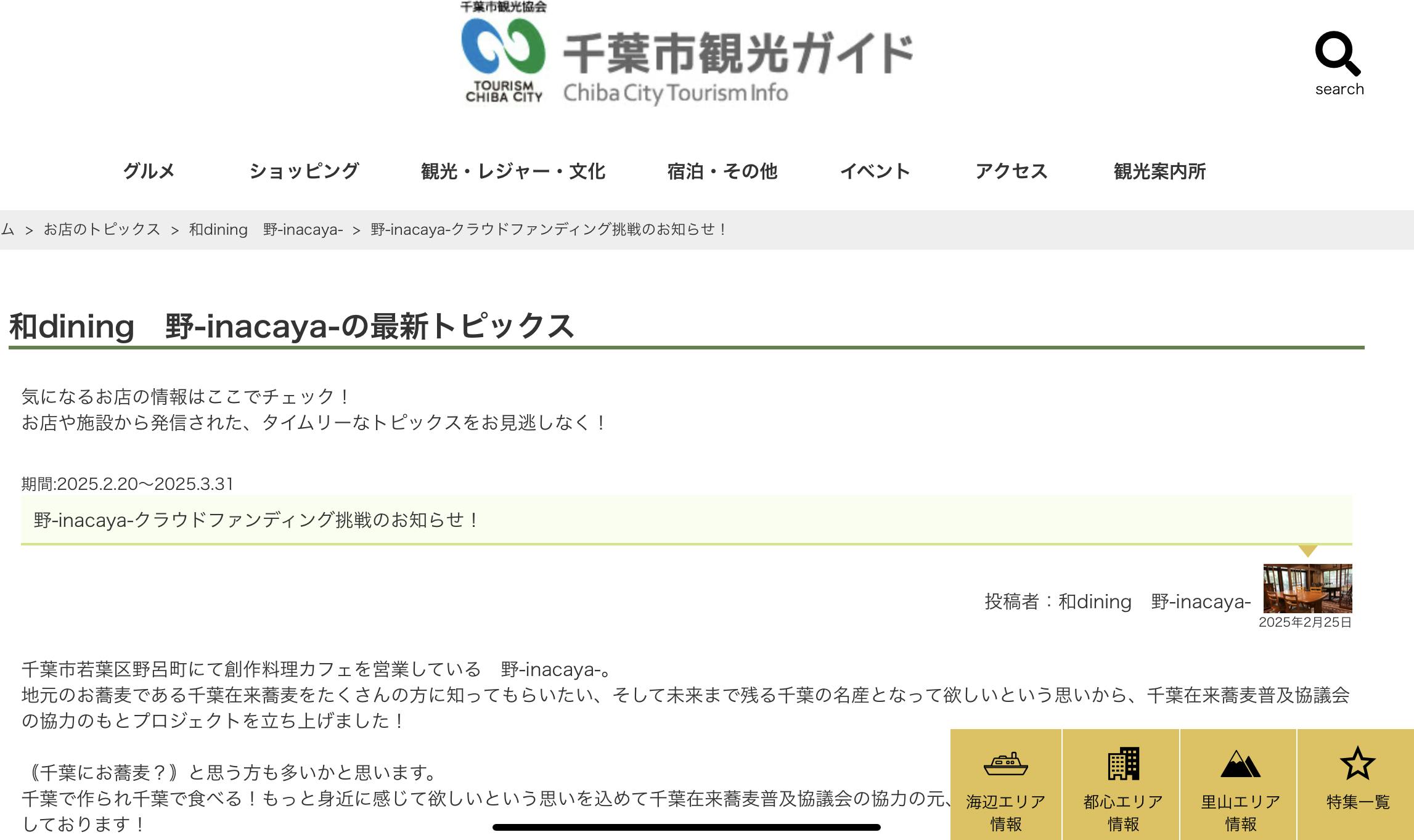 千葉市観光協会様ホームページに本プロジェクトを掲載いただきました!