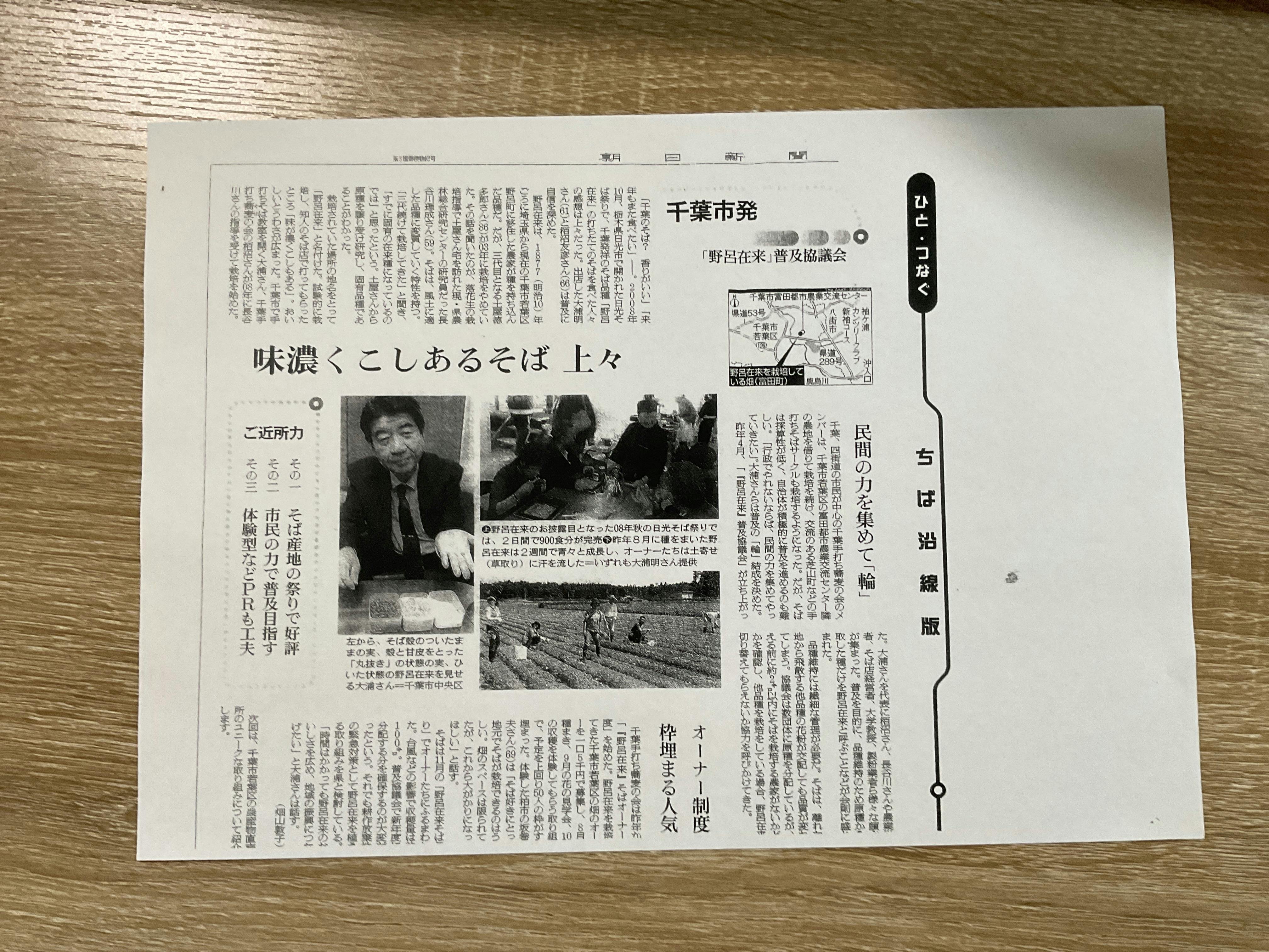 当会はこれ迄「野呂在来」の名称で普及に努めてきましたが、今回、全国ブランドとして展開していくに当たり、千葉県全域から栽培したいとの希望が多く事務局へ寄せられ、野呂地域という狭いエリアから千葉県全域に栽培を広げるに当たり、命名した長谷川先生の御理解も得られ、「野呂在来」が千葉県を代表するそば在来品種であることから、名称を「千葉在来」といたすことになりました。