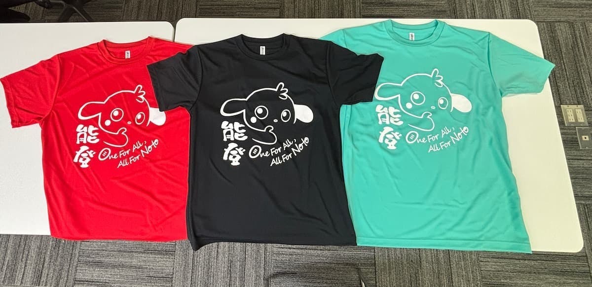 さて、クラウドファンディングの返礼品のもう一つの目玉、ラガマルくんの能登復興祈念Tシャツの制作中の写真が届きました。
