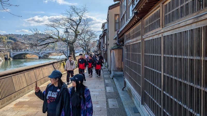 今回は呼びかけに応じてくれた、県内のラグビーチームや大学生、ウォーキング・ランニング愛好者25名が参加し、金沢市内の観光名所を巡りながら約12kmのコースを歩いて巡りました。