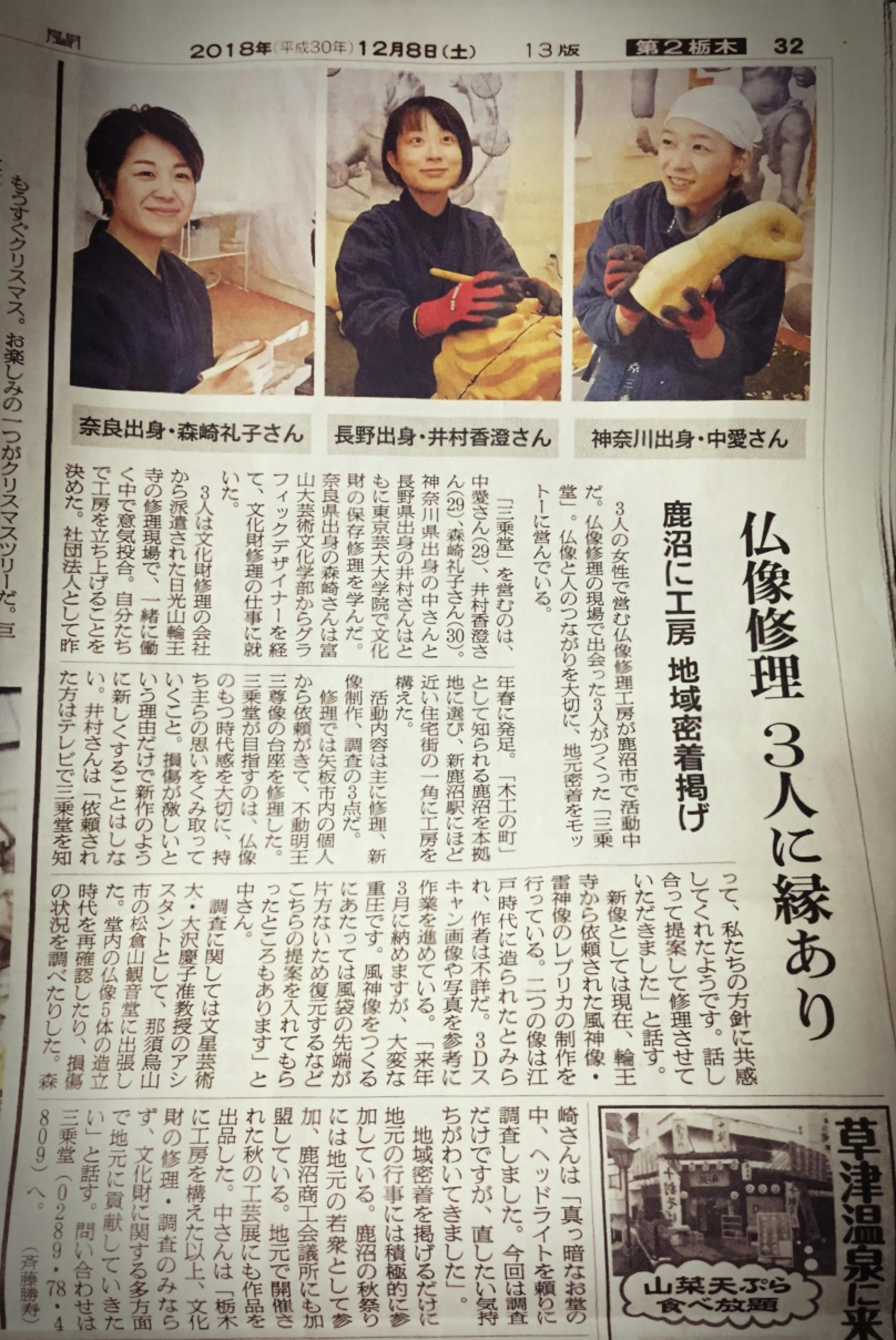 さて、今朝の朝日新聞(栃木版)に三乗堂取り上げてくださいました!