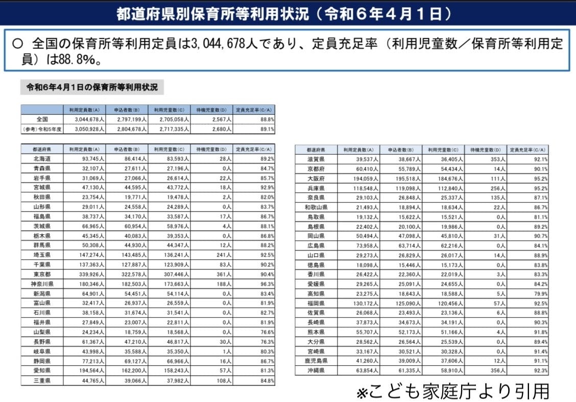 待機児童が多い県は首都圏に集中しています。待機児童が多いという事は保育所に入所したくても入所できない子供が多くいるということです。つまりそれだけ子育てに負担がかかっているといえます。