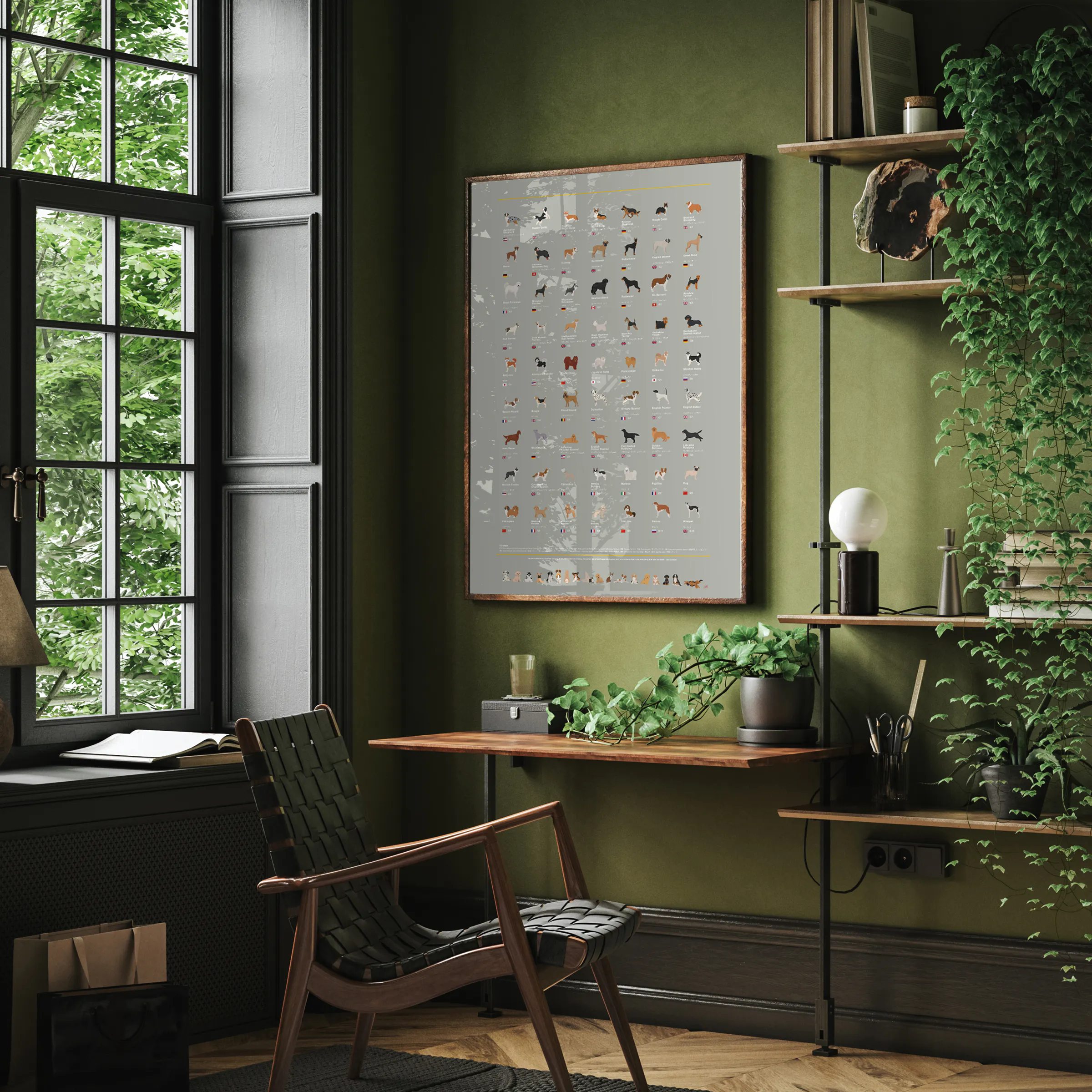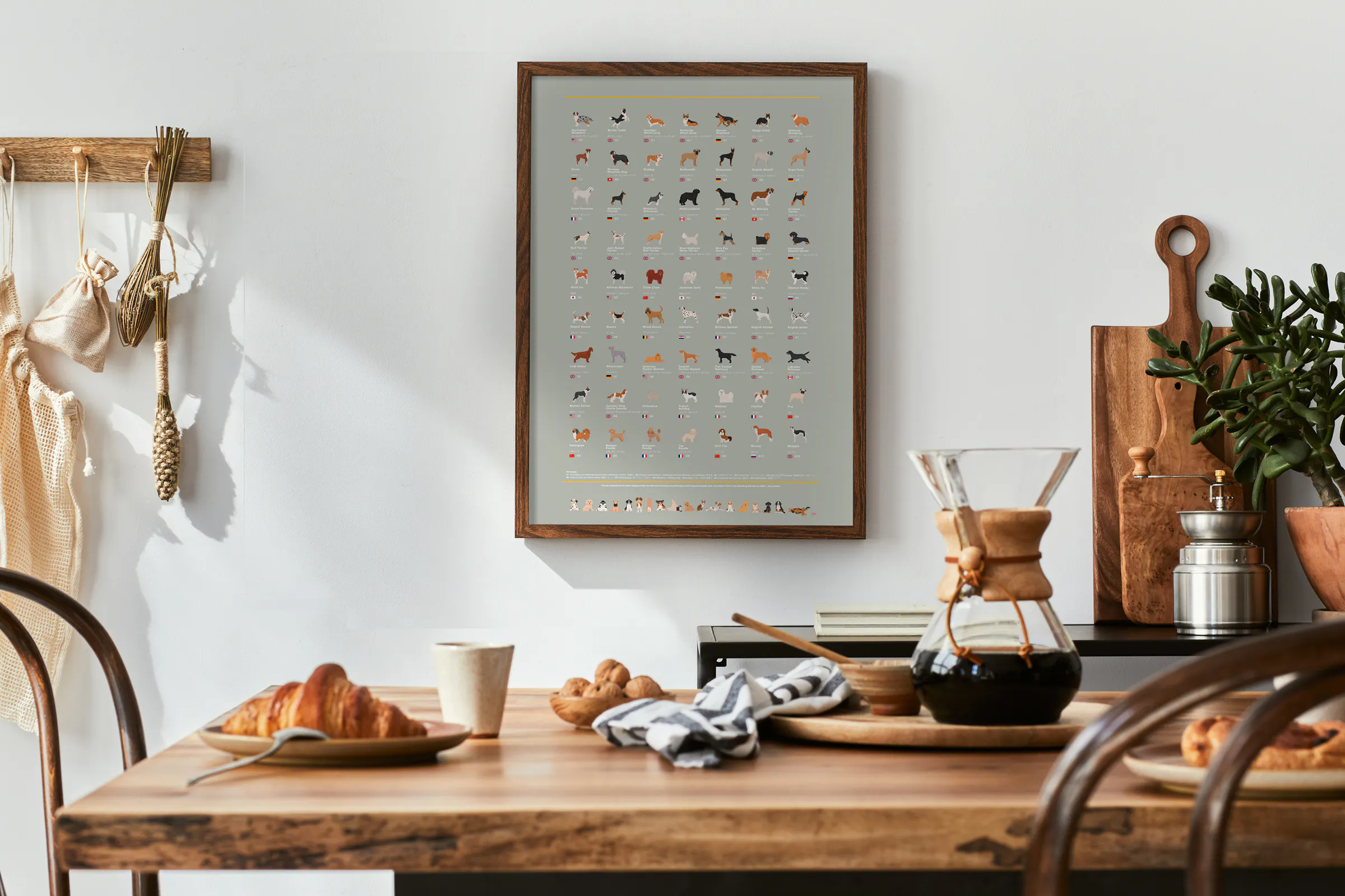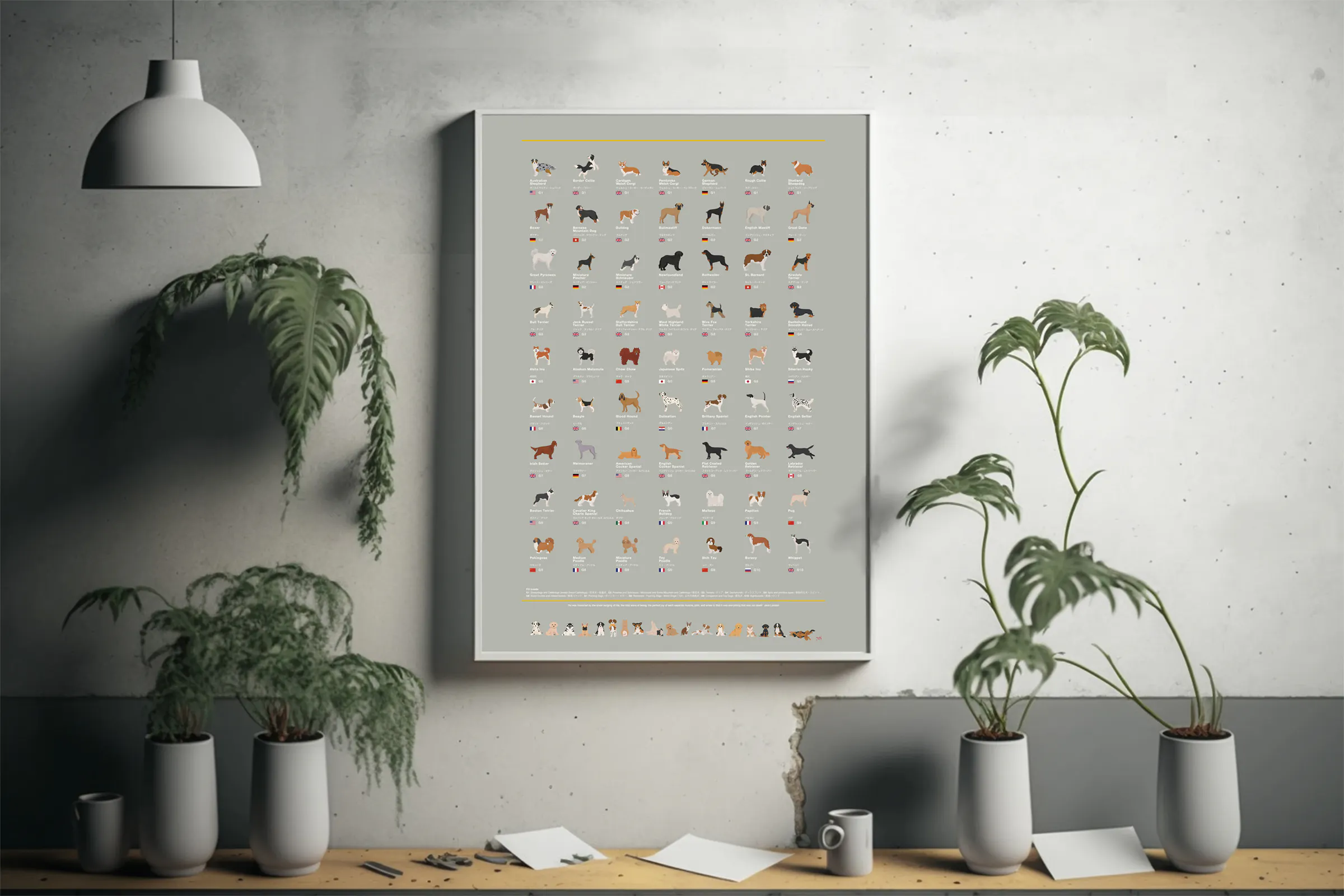 本作のコンセプトは、きちんとインテリアに馴染む美しいデザインであること、そして何よりも犬たちの姿を愛情をたっぷり注いで描くこと。