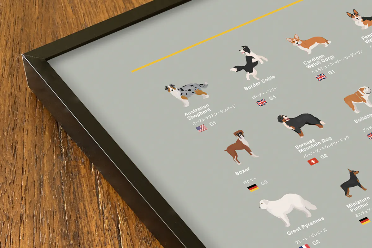 みなさまからのご意見等を反映し、前バージョンから一部犬種デザイン変更、犬種入れ替えをおこなった2025年7月改訂版。