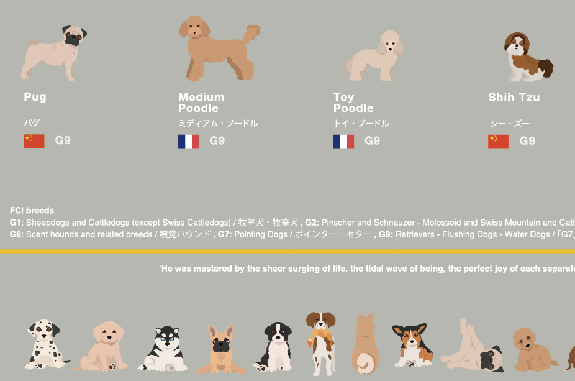 国際畜犬連盟による分類(ポスター上ではG1、G2、、、と記載)
