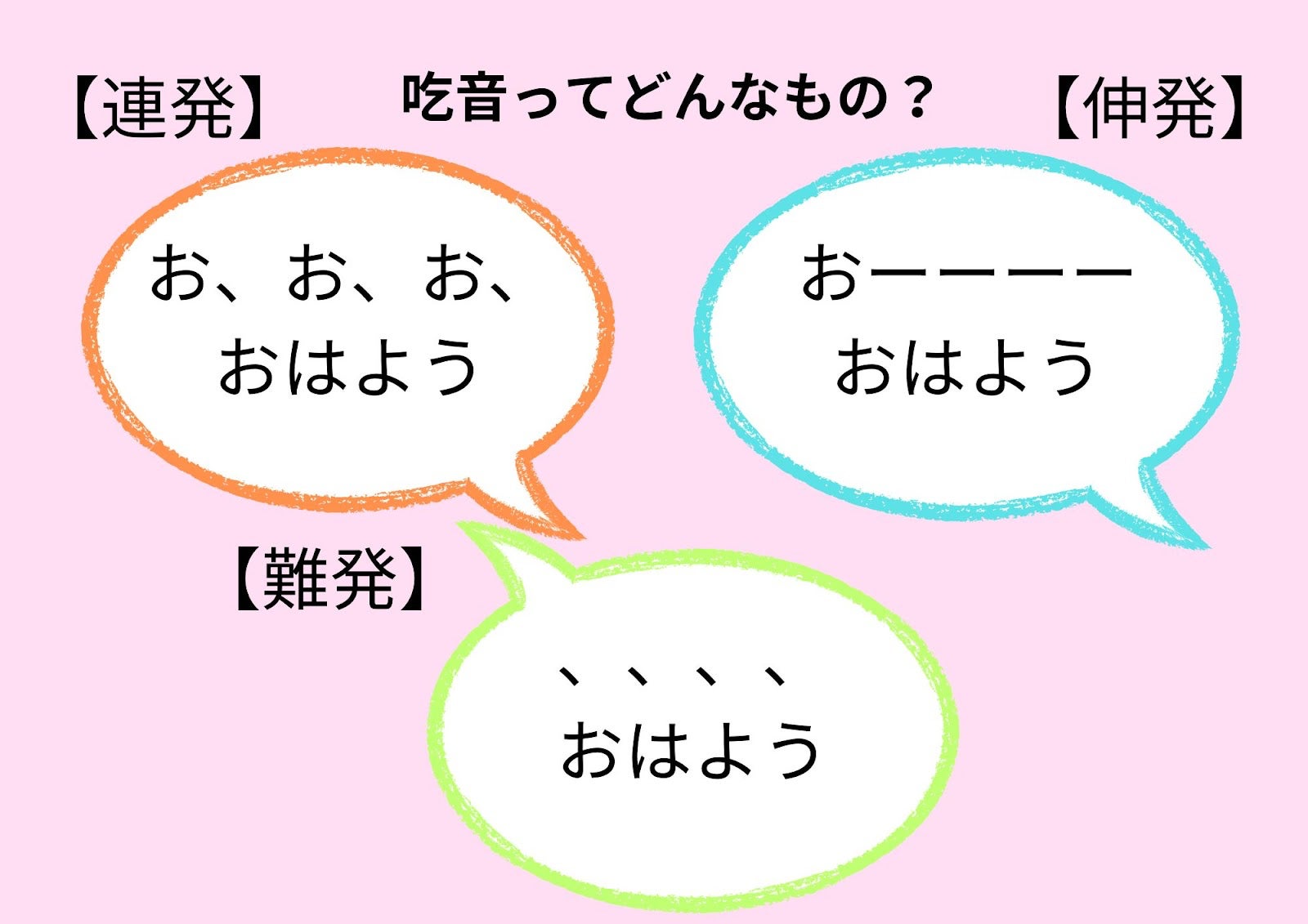 吃音とは言葉がスラスラ出ない発話障害の一種で主に3つの種類があると言われています。
