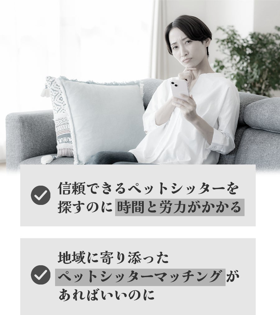 一方、飼い主さん側は、許認可登録状況や保険、経験などの情報を十分に確認できる環境が少なく、安心して任せられる人を探すことが難しいのが現状です。
