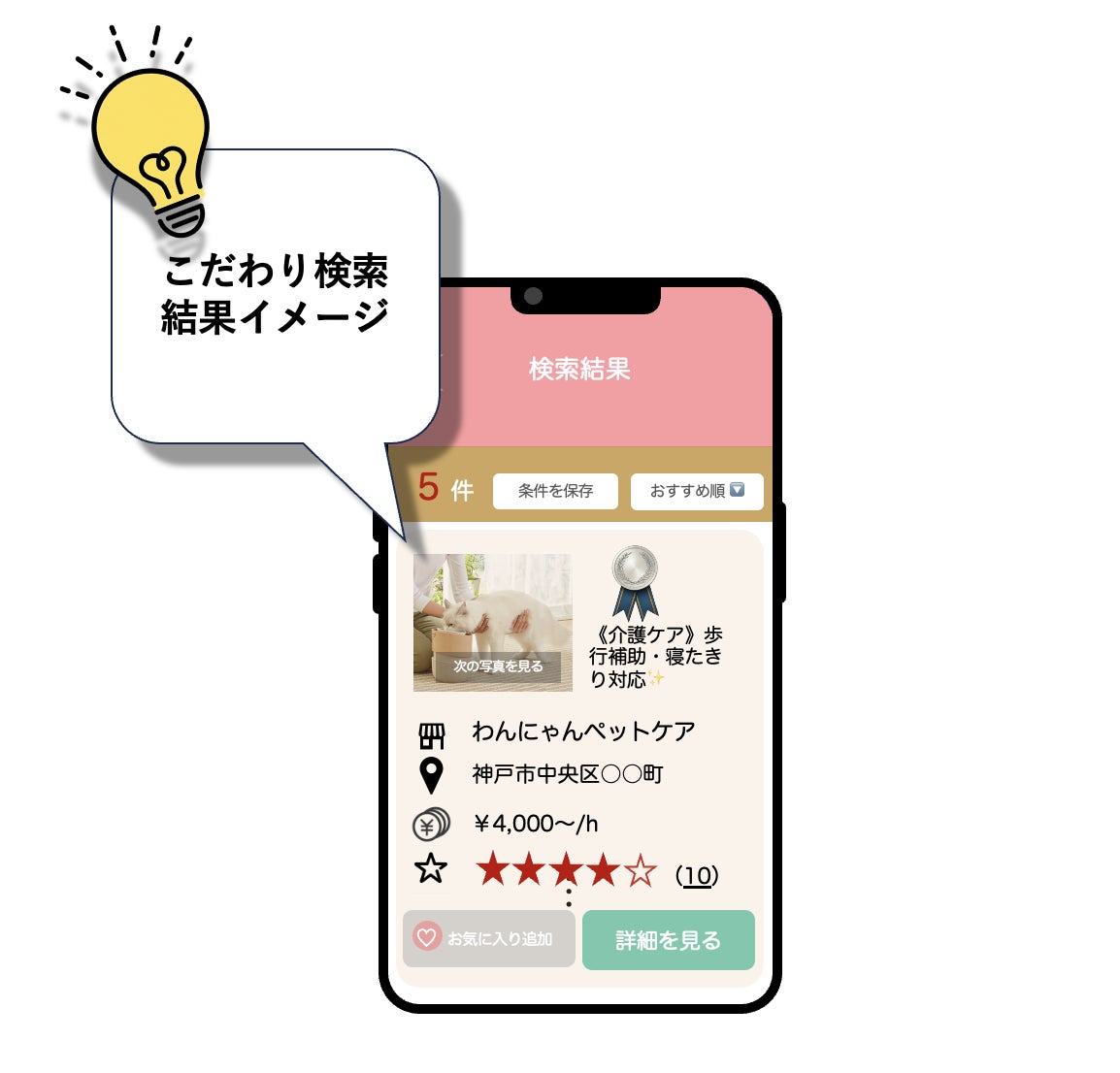 ▲独自のこだわり条件で絞れる検索機能 ※画像は開発イメージです
