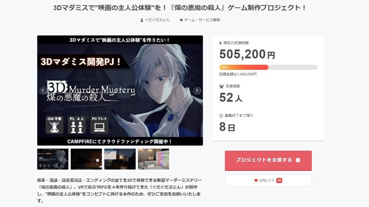 こんにちは。「ぐだぐだぶとん」代表の逆路です。今回は、弊サークルが制作しているSteam向け3Dマーダーミステリー『煤の悪魔の殺人』についてのお知らせです。リリース予定が5月になりました。リリース予定を2025年冬としていましたが、このたびリリース予定を5月に変更いたしました。今回リリースを延期することになったのは、一部仕様の変更が必要になったことに加え、代表である私自身のチーム運営面での不足があったためです。お待ちいただいている皆さまにはご迷惑をおかけし、心よりお詫び申し上げます。議論や探索、アイテムの閲覧などの仕様は大きく変わり、直感的な操作で遊びやすく、画面映えもする構成になりましたので、ぜひご期待ください。リリース日の詳細につきましては、3月中に発表させて頂きたく思います。タイトルが変更されました。旧タイトル『煤の悪魔の殺人』から新タイトル『黒焦げのあなた』に変更しました。サジェストに悪影響が出るかもしれない「殺」の文字を避け、焼死体にまつわるゲームであることや、本作のトーンをより伝えられるものとして本タイトルを採用しました。この変更に伴い、webページのドメインや内容は2026年冬に修正予定です。制作状況について現在は仕様変更への対応、背景やモーションのブラッシュアップを重ねながら、新たに音楽や中国語翻訳の担当メンバーを加えて活動中です。事件の記憶パートはまさに「映画の主人公体験」ができるよう、しっかりと作り込んでおりますので、お楽しみにお待ちください。改めて、このたびリリース予定が遅れてしまい大変申し訳ありません。皆様に一刻でも早く、ご満足いただける体験が作れるよう、全力で取り組んでおりますので今後ともよろしくお願いいたします。