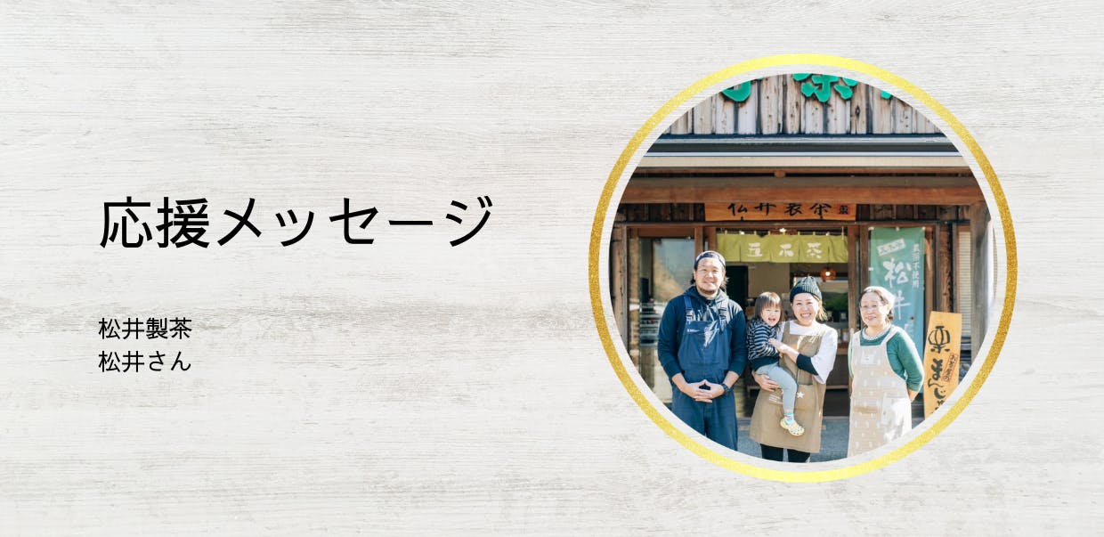 今回のクラウドファンディングに、松井製茶 松井さんから応援メッセージをいただきました。