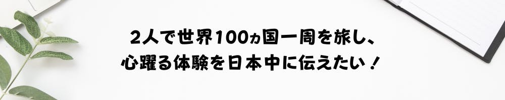 ぜひ、僕らと一緒に世界100ヵ国一周を旅しましょう!