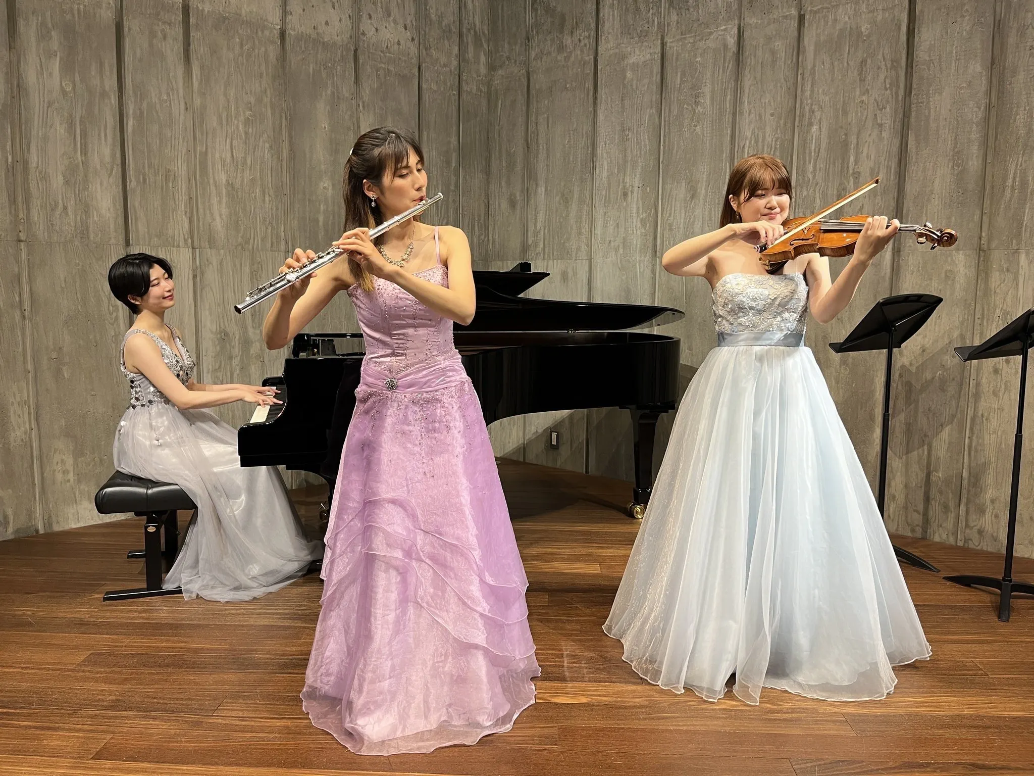 西洋楽器(フルート、ピアノ、バイオリン)を組み合わせた特別編成のアンサンブルが、独創的で美しい楽曲を演奏します。