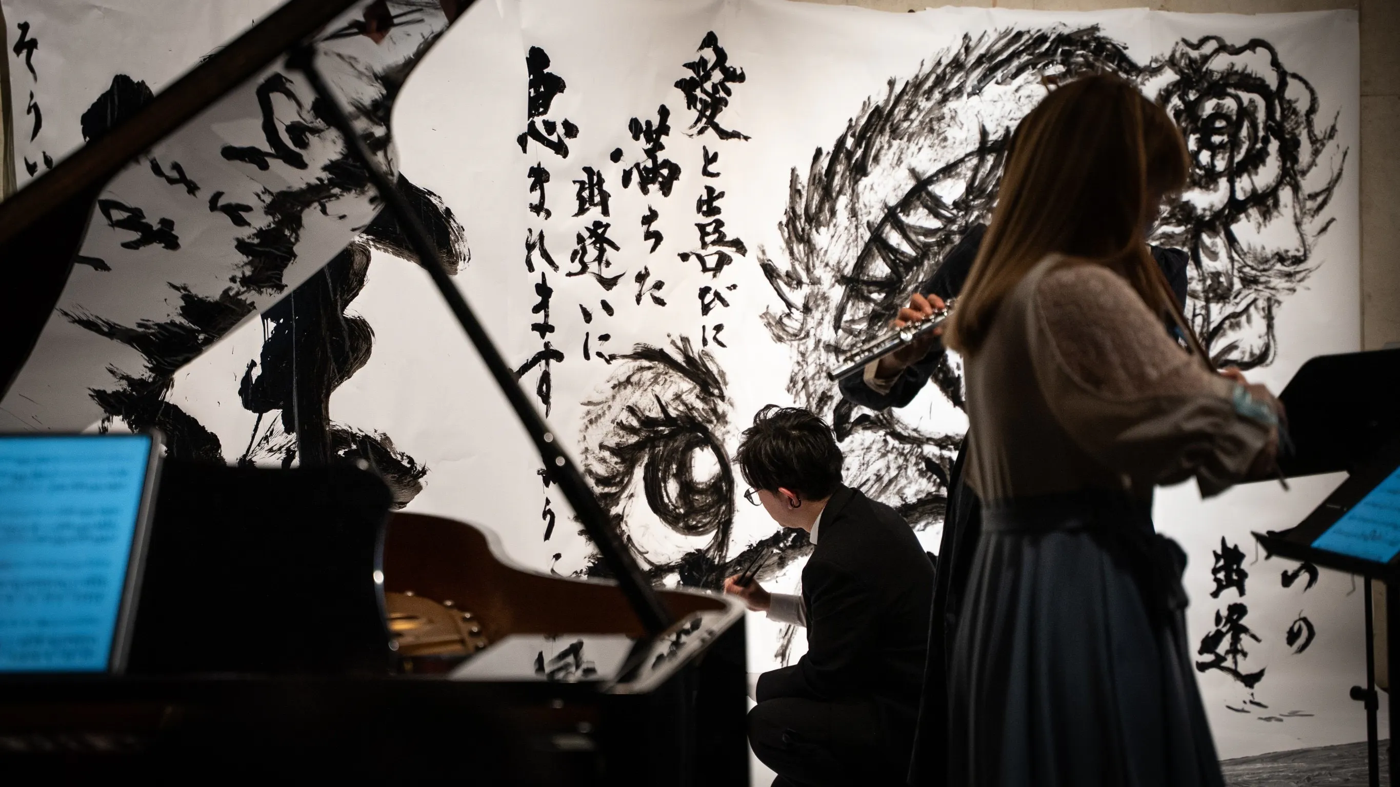 このパフォーマンスは、ライブならではのクラシック音楽、書道、ライブペイントがリアルタイムで融合する舞台です。それぞれの要素が互いに影響し合って、その場で変化しながらの即興演出を楽しんでいただきたいです。