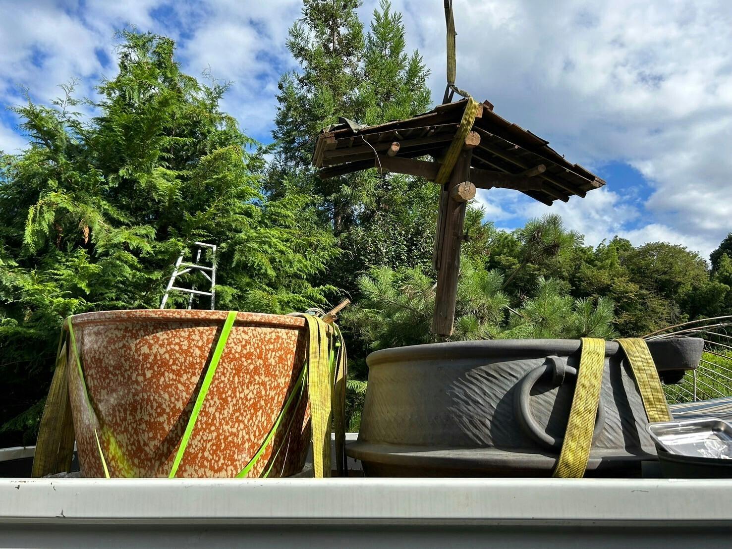 温泉の浴槽には「信楽焼の壺風呂」を使用。