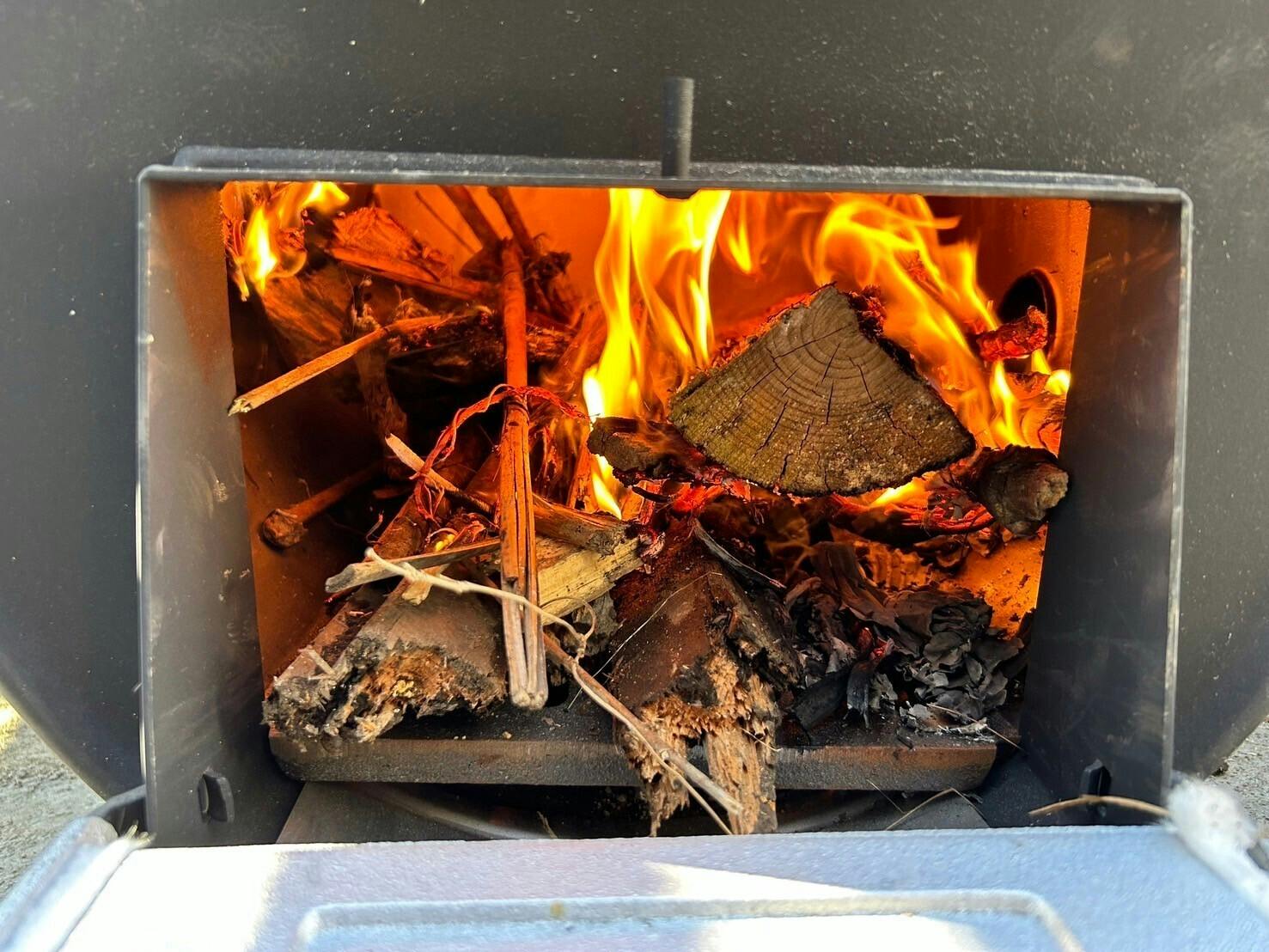 ただ、無料プレゼントの薪をくべてお好みの温度に温める一手間も、