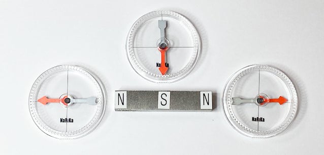 ・両端がN(N-S-N)と両端がS(S-N-S)磁石各1個と方位磁針1個のご提供