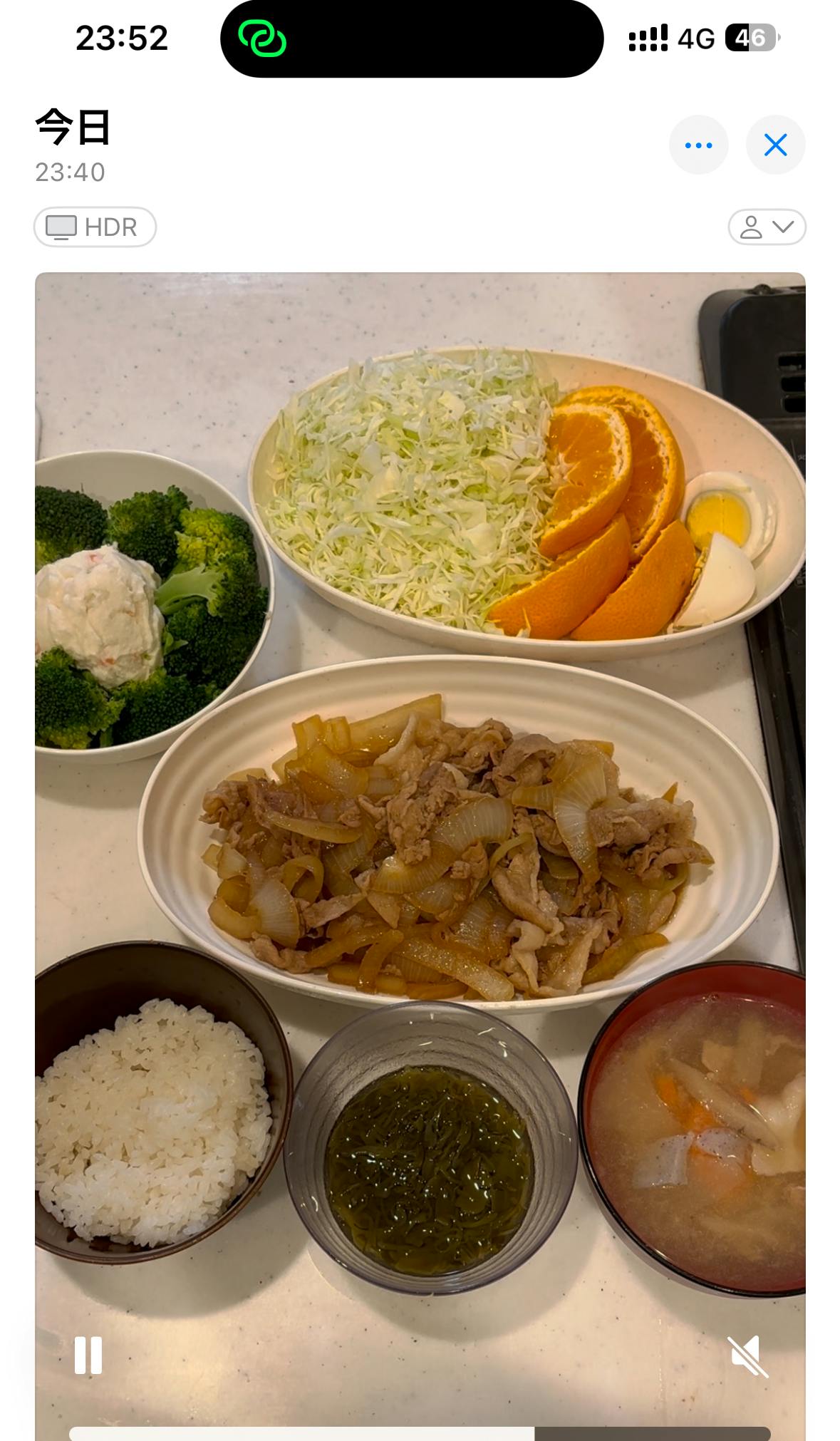 2024/12/02 00:04自己紹介を兼ねて趣味の料理をしました①豚肉の生姜焼きと玉ねぎ炒め②豚汁③ゆで卵を茹でてから切って④ブロッコリーを茹でて⑤みかんを切って⑥めかぶ・キャベツの千切り・ ポテトサラダは既製品を使用して 奮発して作ってみました。 もっと見る
