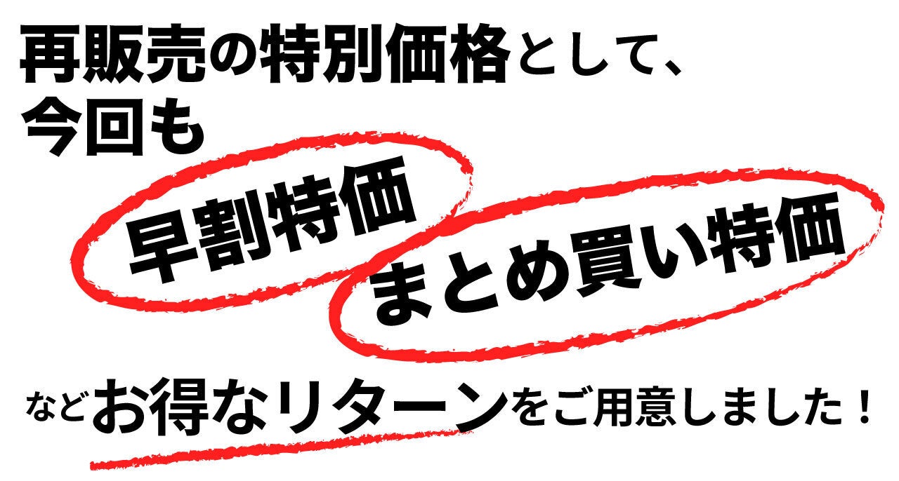 今回のお得な再販プロジェクトで購入いただければ嬉しいです!