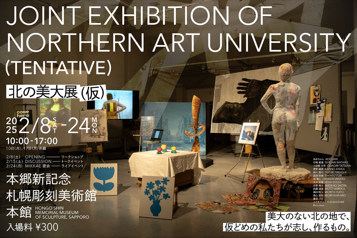 2025/02/23 10:27TALK EVENT 北の美大展(仮)「講評会」が無事に終了いたしました!お世話になっております。北の美大展実行委員会です。先日2月15日(土)に展覧会会場にてトークイベントが開催されました。当日は、本郷新記念札幌彫刻美術館の館長である吉崎元章様、ならびに札幌国際芸術祭2027フェスティバルディレクターである細川 麻沙美様をお招きし、多くの皆さまにご来場いただきましたこと、心より御礼申し上げます。本イベントでは、展覧会に展示されている作品の講評をはじめ、展覧会のテーマについての深堀りや開催に至るまでの経緯、北海道の文化創造における教育の役割、そして今後の展望についてを出展者との対話形式で意見を交わしました。ご参加いただいた皆さまからも貴重なご質問やご感想をいただき、充実した議論が展開され、大変有意義な時間となりました。改めまして、ご参加いただいた皆さまに心より感謝申し上げます。今後のイベントのご案内以前の活動報告にてご案内しておりましたライブイベントに加え、本郷新記念札幌彫刻美術館の館長による特別レクチャーを開催する運びとなりましたので、是非お越しいただければと思います!SPECIAL LECTURE北海道の美術- ここに生き、制作する道を選んだ先人たちの系譜 -2/24(月・祝)13:00-14:00本郷新記念札幌彫刻美術館 本館 1F研修室定員40人申込不要(当日、入館料が必要になります。)講師:吉崎 元章本郷新記念札幌彫刻美術館館長 LIVE EVENT「密会」 MIKKAE-SECRET UNDER CLUB-2/24(月)14:30-16:00本郷新記念札幌彫刻美術館 本館 展示室1申込不要(当日、入館料が必要になります。)DJ & LIVE SESSIONRico Iwaiinstagram.com/lawi0cirTAKASU YURIinstagram.com/yurit9525北の美大展(仮)2025年2月8日(土)- 24日(月)10:00-17:00※10日(月)、17日(月)休館本郷新記念札幌彫刻美術館 本館札幌市中央区宮の森4条12丁目そして、本展覧会「北の美大展(仮)」もいよいよ明日が最終日となります。ここまで支えてくださった皆さまに心より感謝申し上げるとともに、最後の一日までどうぞよろしくお願いいたします。それでは、皆さまのご来場をお待ちしております! もっと見るイベントスケジュールが一部変更になりました。