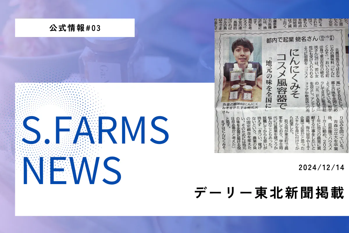 今回もS.FARMSのNEWSを投稿させていただきます!
