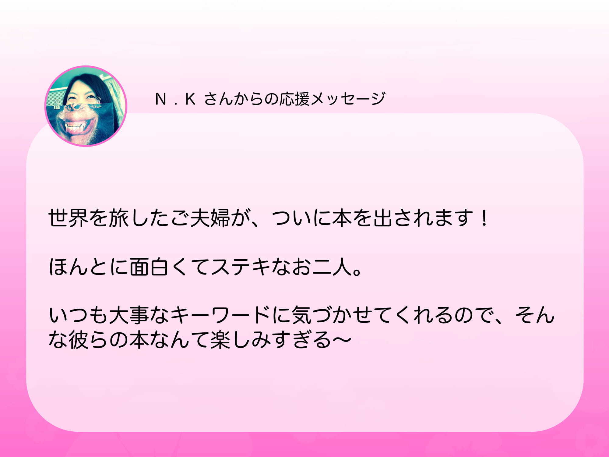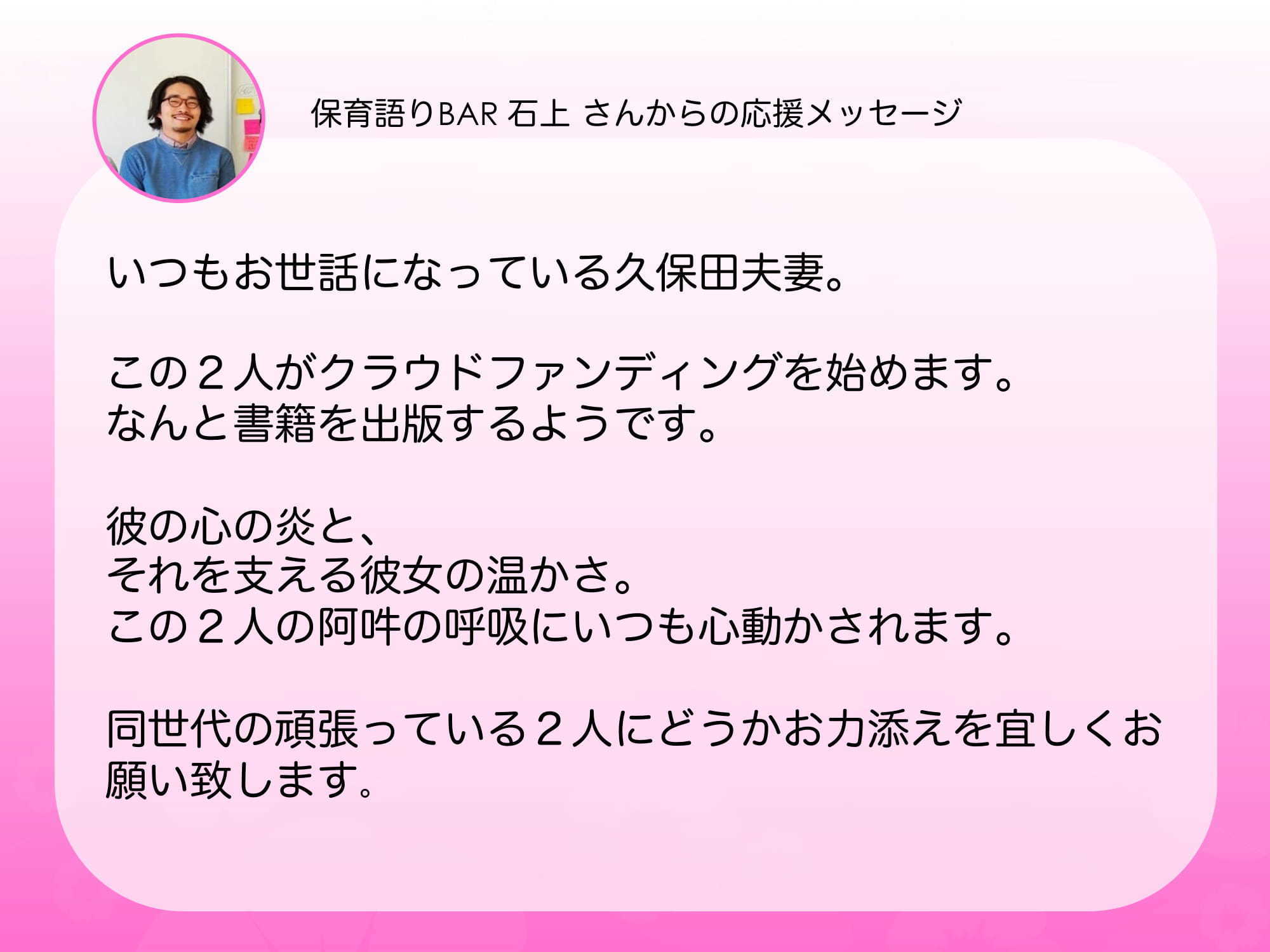 今回は5名の応援メッセージをご紹介したいと思います(o^^o)