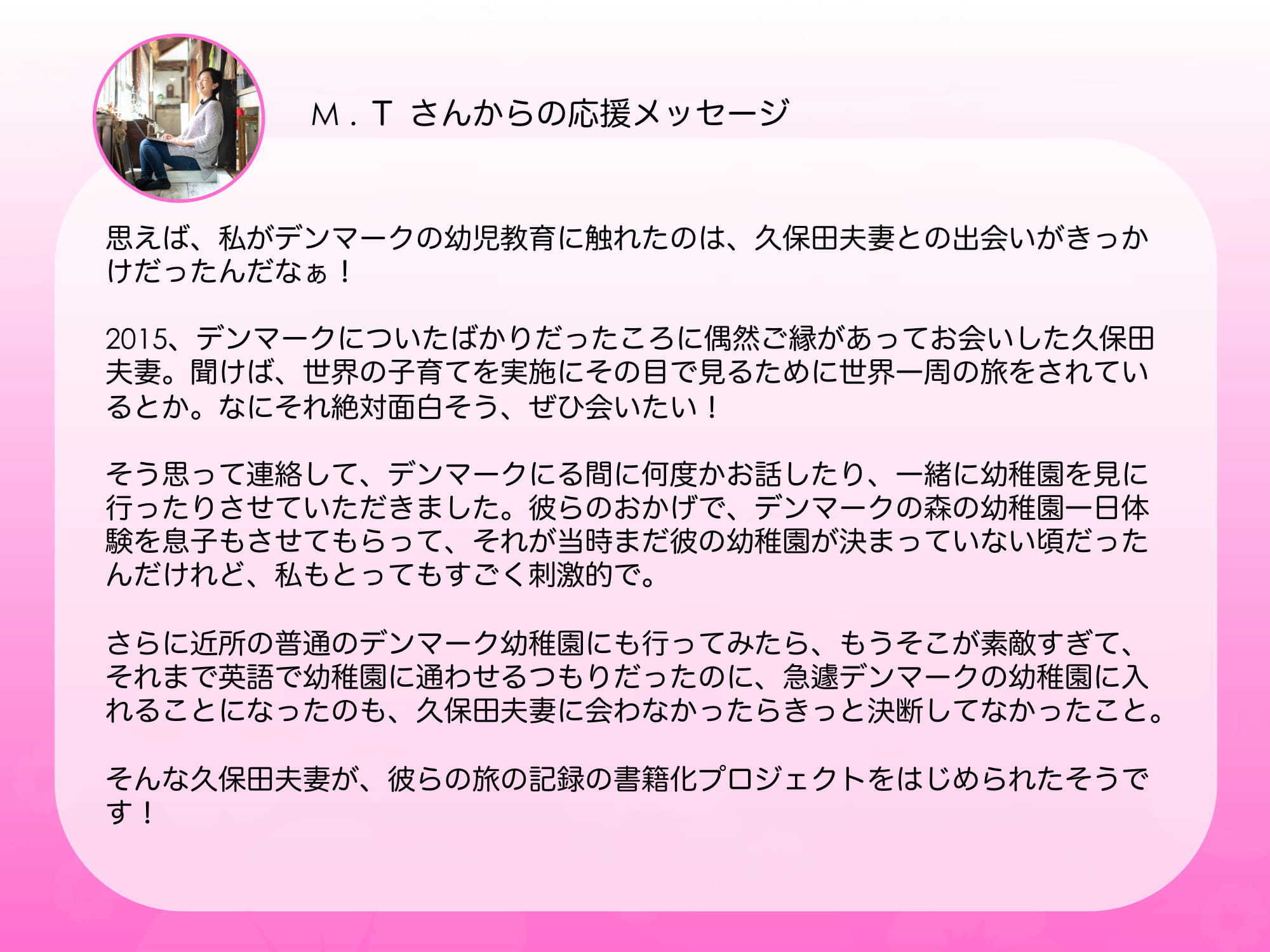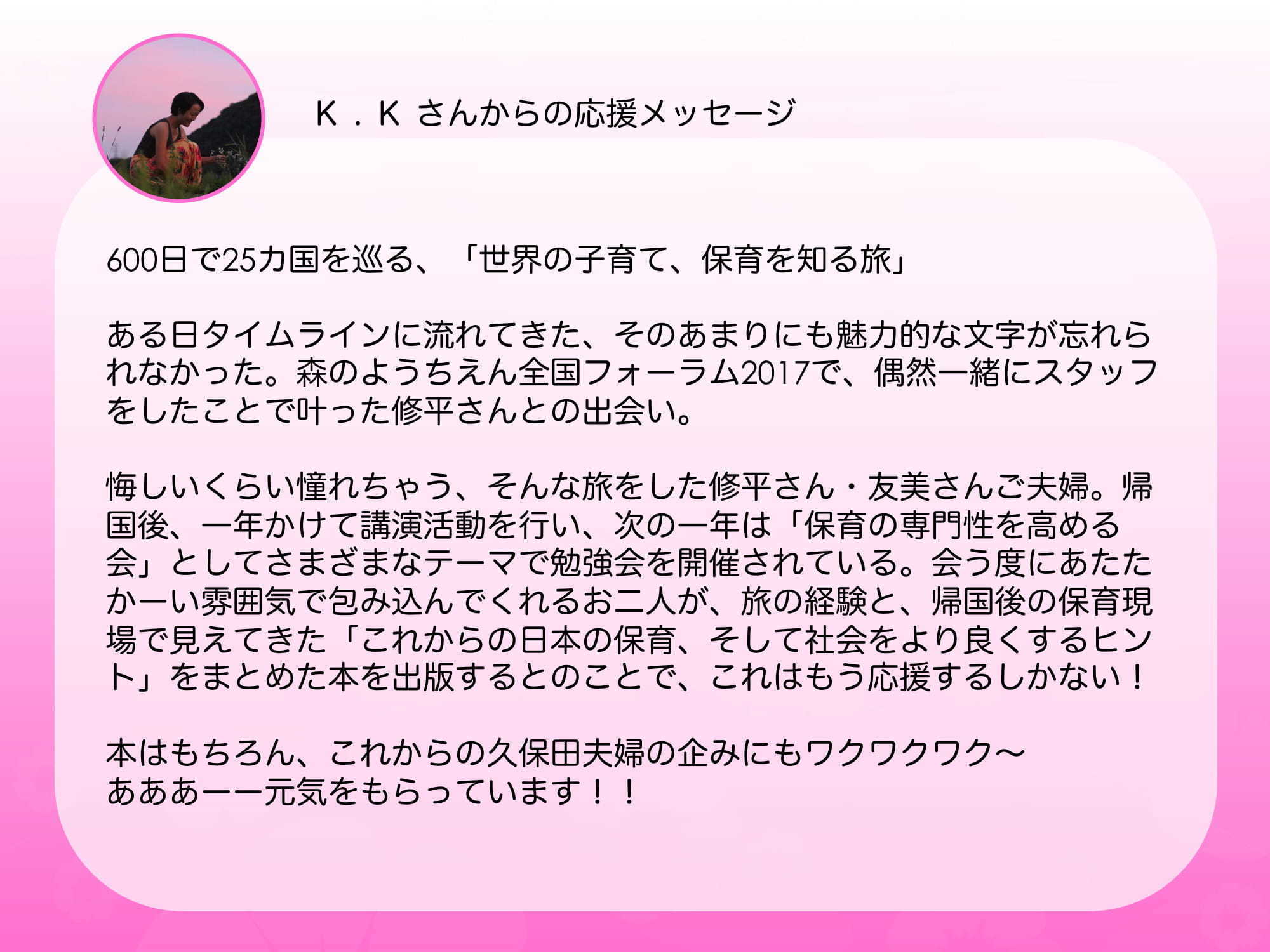 他にも多くな方から応援や励ましのお言葉を頂いています。すべて読ませて頂いています。今後活動を続けていく勇気とパワーになっています。