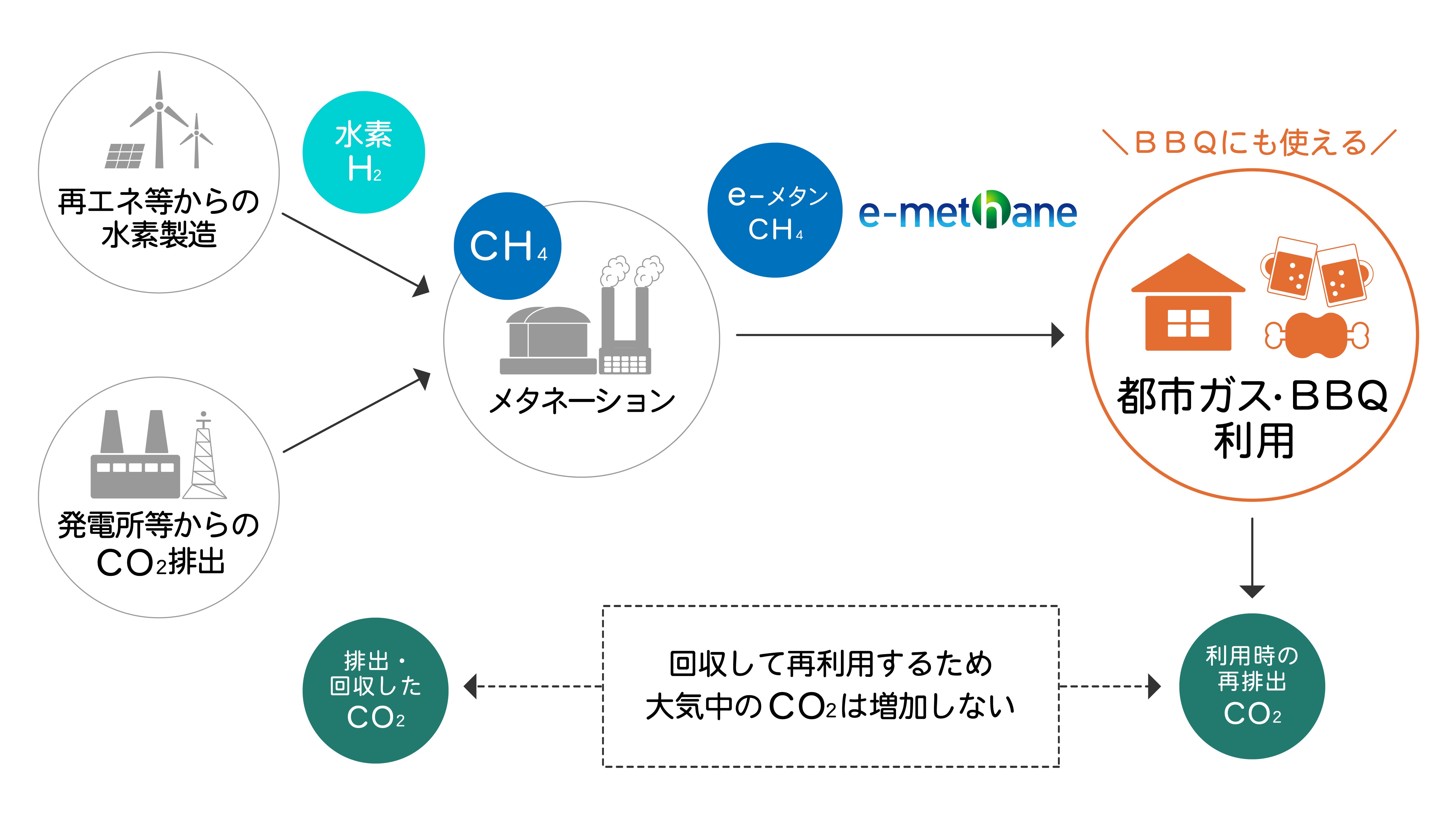 ▼「e-methane」とは?─新たに二酸化炭素を排出しない、画期的なエネルギー