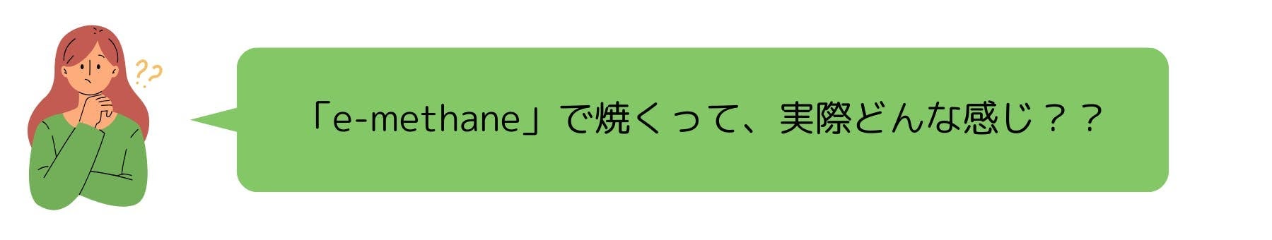 今回の「e-メタン焼肉」イベントでは、その「e-methane」で焼いたお肉をご来場いただいた皆さんに味わっていただきます!(ガスの容量 / お肉の量に限りがあるため、場合によっては通常のガスでお焼きしたお肉となる場合 / 配布終了となる場合がございます。ご了承ください。)