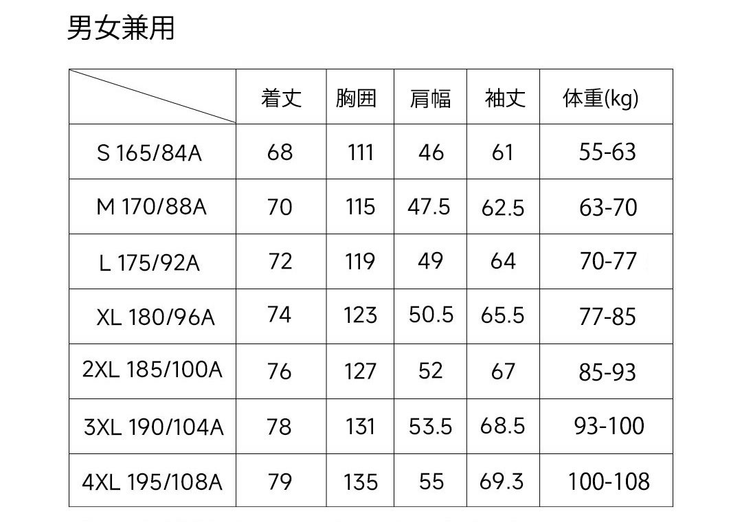 サイズ:S/M/L/XL/2XL/3XL/4XL