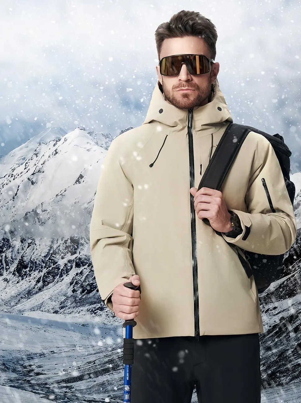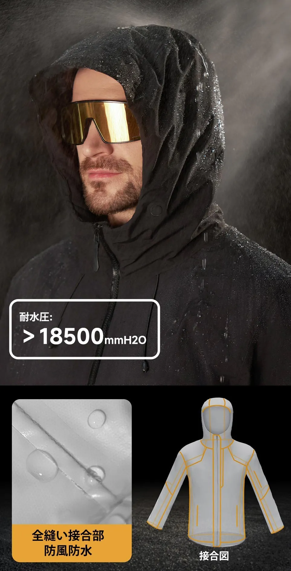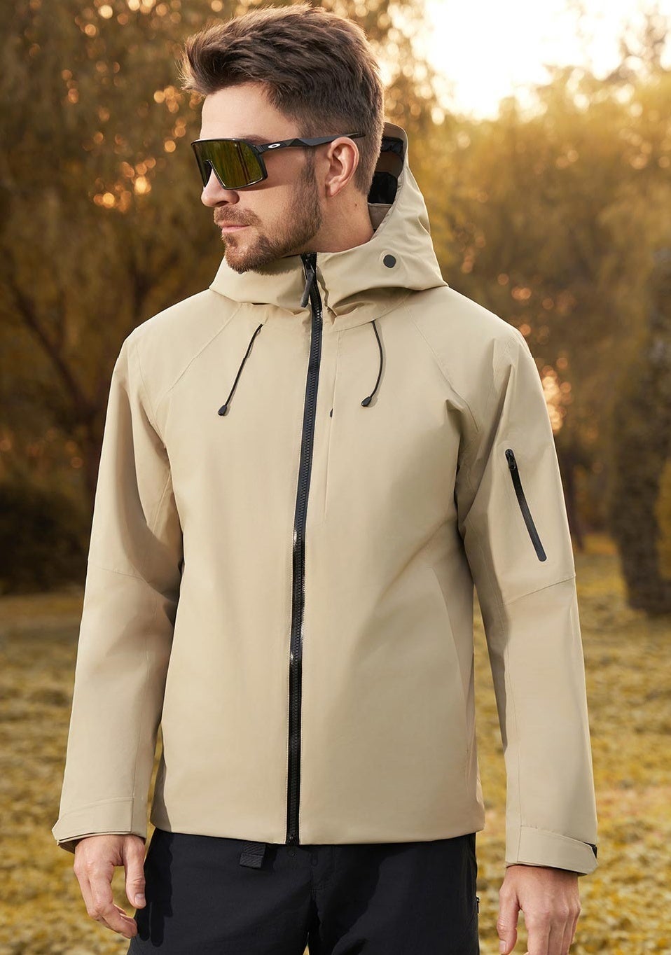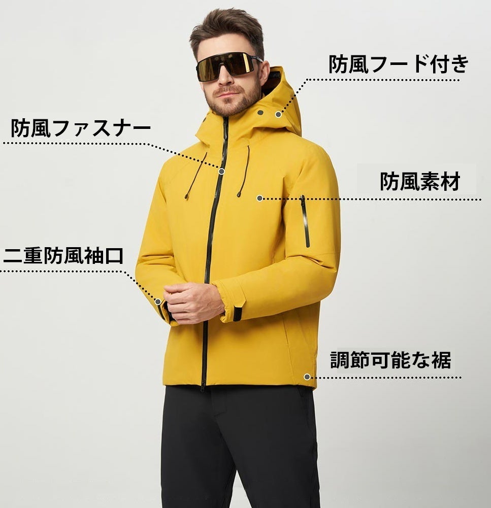 プロ仕様の防風素材を使用し、防風ジッパー、防風フード、二重防風カフス、調節可能な裾などを備え、冷風の侵入をしっかり遮断します。