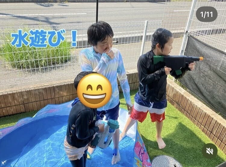 熱中症レベルを確認しながら、外で水遊びもしています。