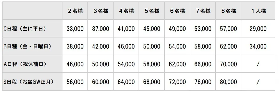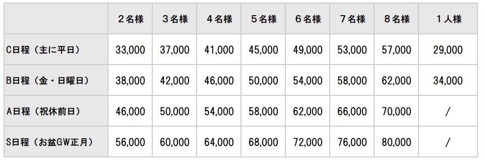 料金は次の通りとなります。