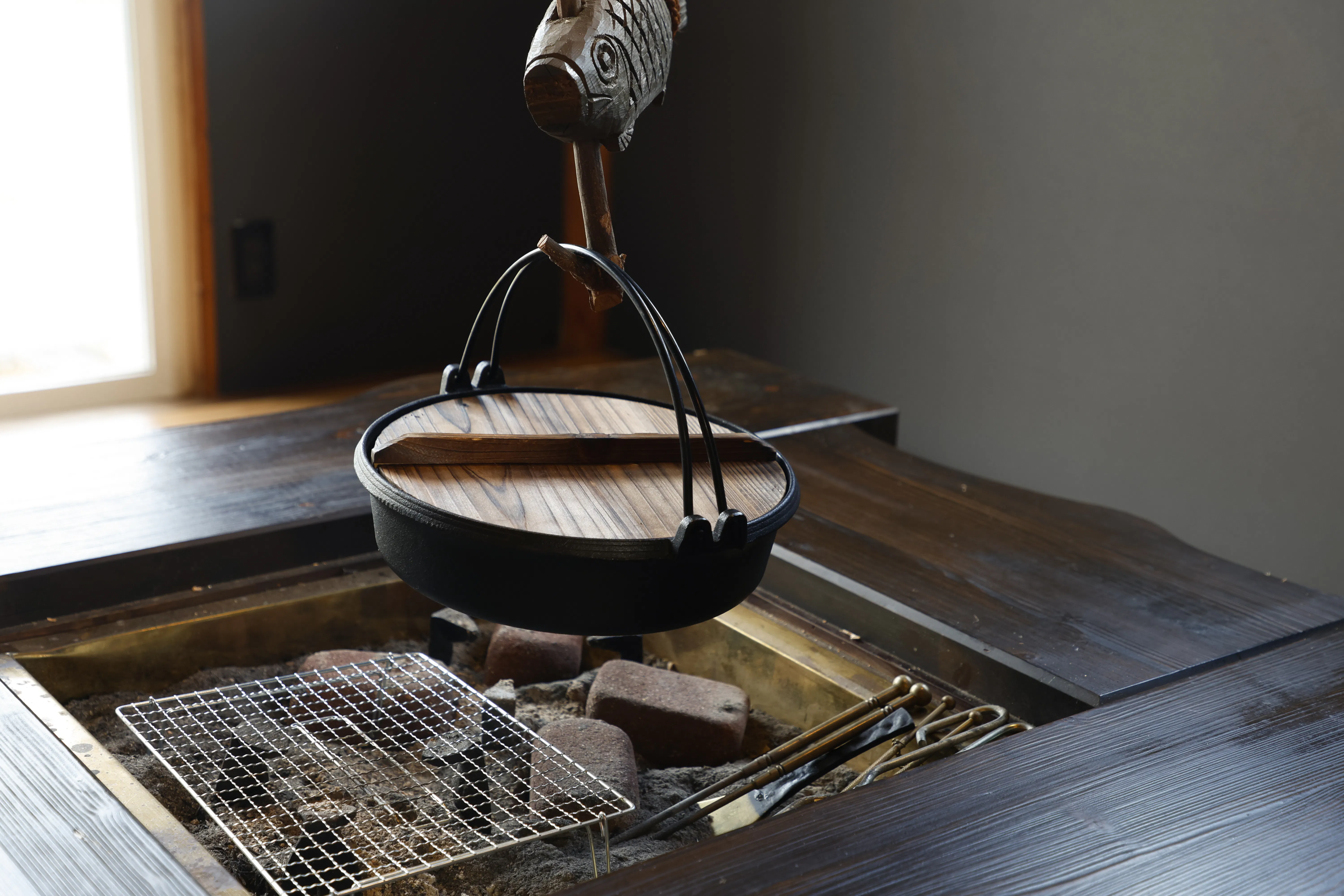 そのため、「部屋食ができる環境」を整え、愛犬と一緒に地元の食材を楽しんでいただける施設を考案しました。それが「囲炉裏部屋」です。