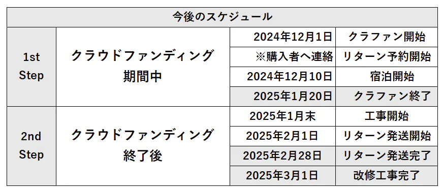完成後は民泊として運用するだけでなく、地域と連携できるイベントなども開催したりと夢は広がります。