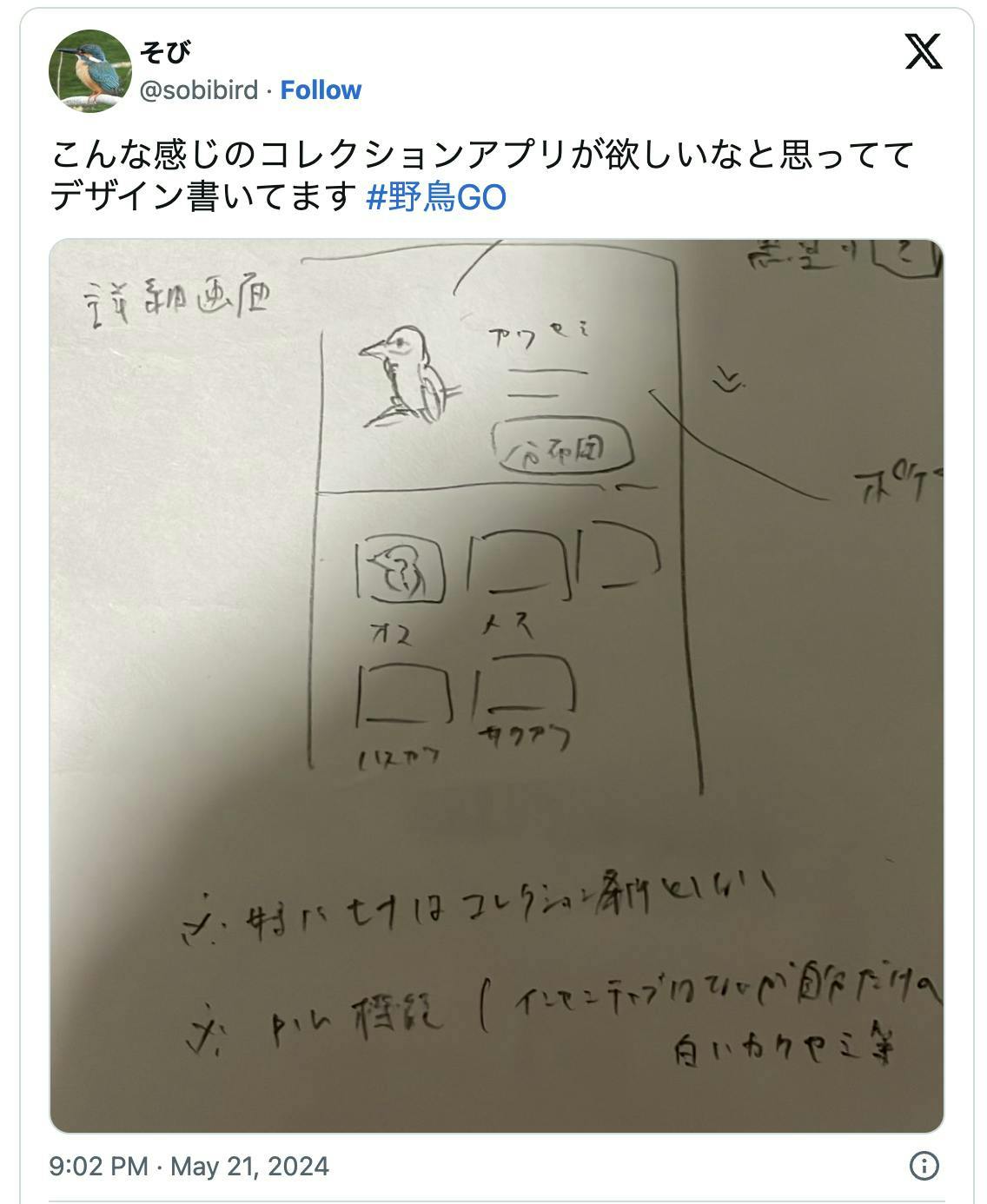 野鳥撮影の趣味に目覚めたのはつい1年半前ですが、もともと関わっていたプロジェクトが落ち着いて次何をやろうか考えていたときに「こんな感じの野鳥アプリが欲しい!」という個人的な思いつきがきっかけで開発をスタートしました。