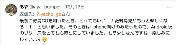 単に鳥好きのためのアプリを作るのではなく、このデジタルな娯楽に溢れた現代でついつい忘れてしまう「自然や動植物、風に触れるってこんなに気持ちよかったんだ」という気持ちを思い起こし、外へと冒険に繰り出すきっかけを作り、その人の人生がより豊かなものになる、そんな体験を生み出すサービスを作りたいと思っています。